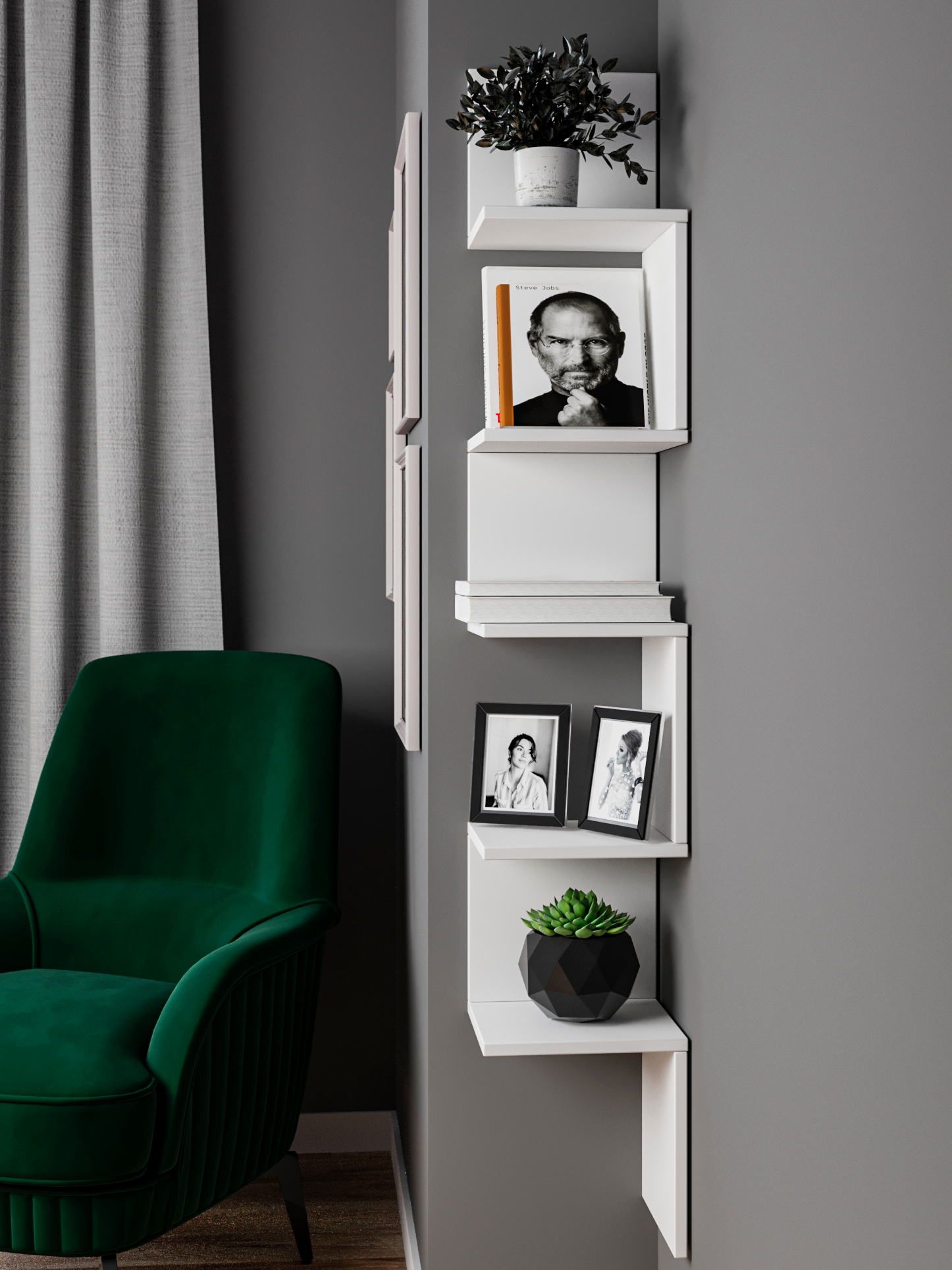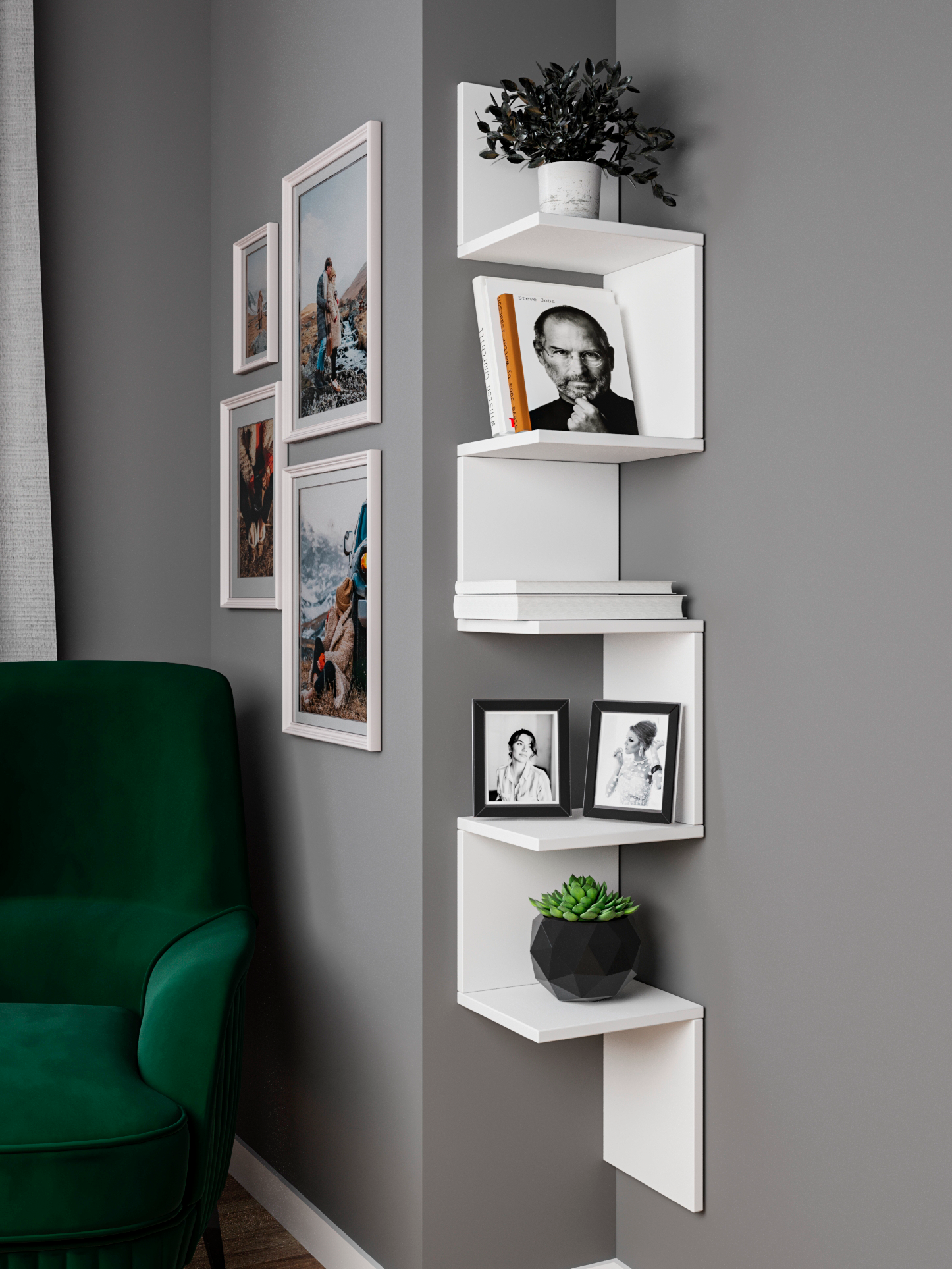 Полка настенная угловая навесная белая для книг и цветов / для ванны / в комнату/ на кухню / полка книжная информация: