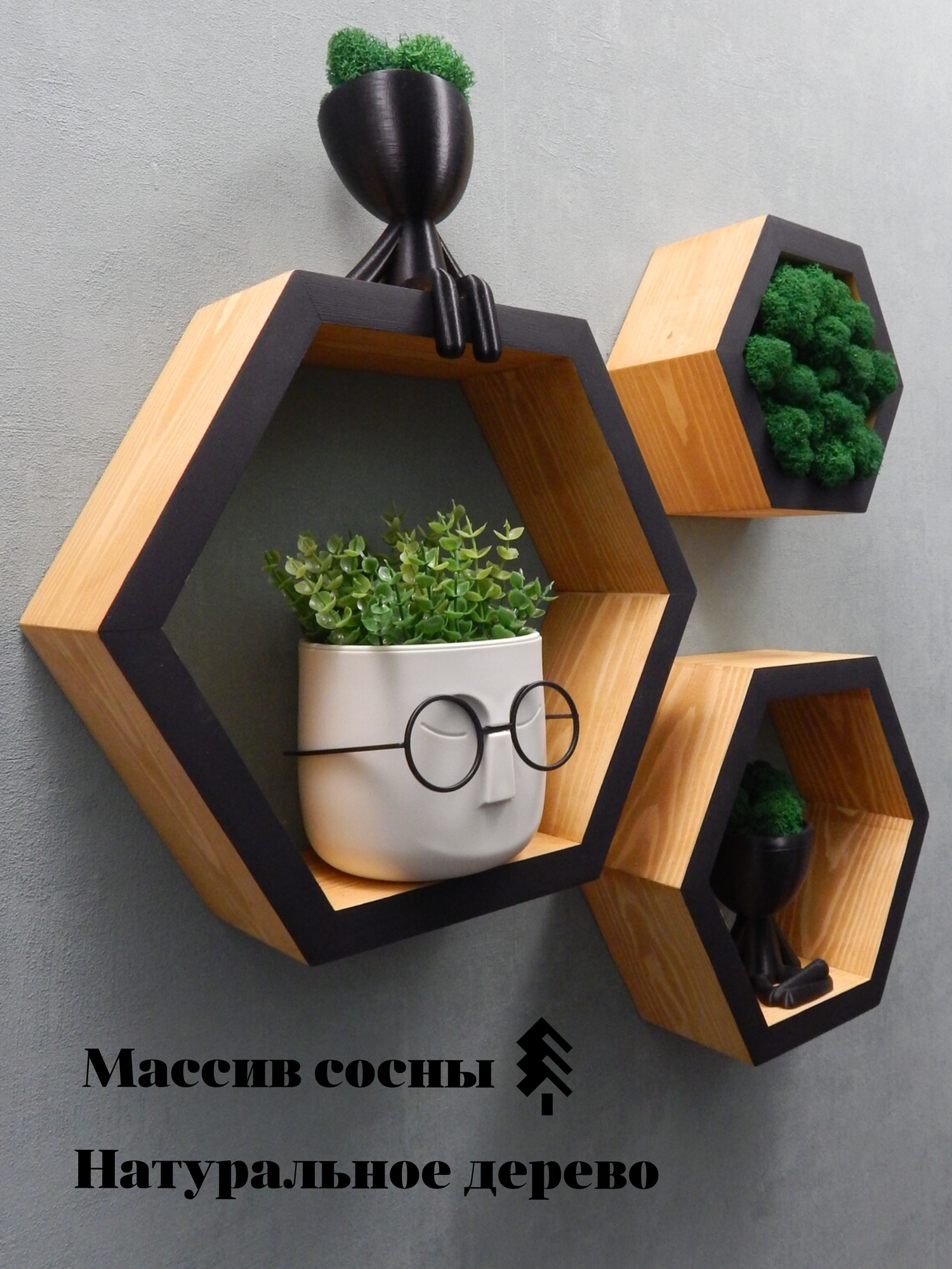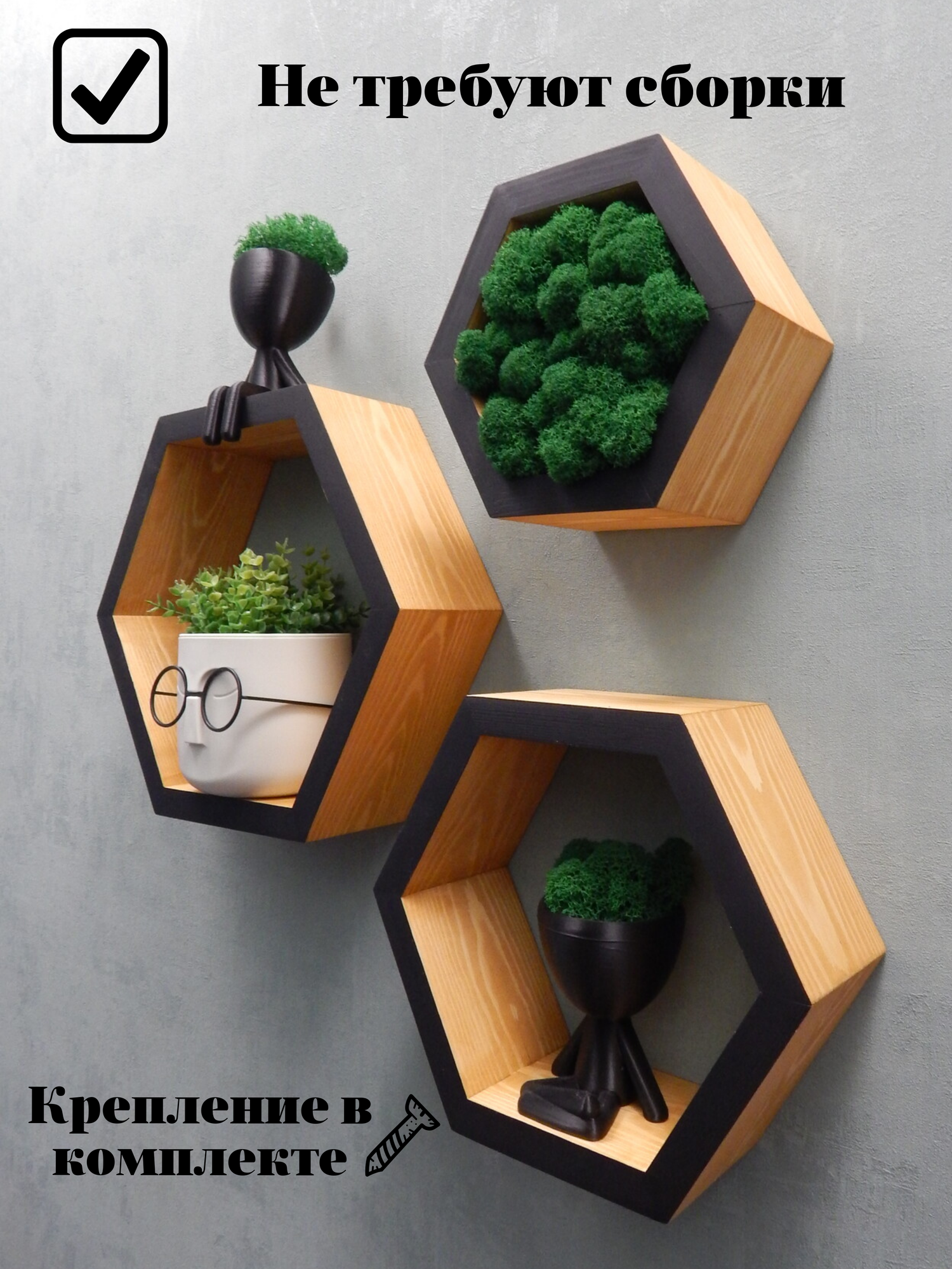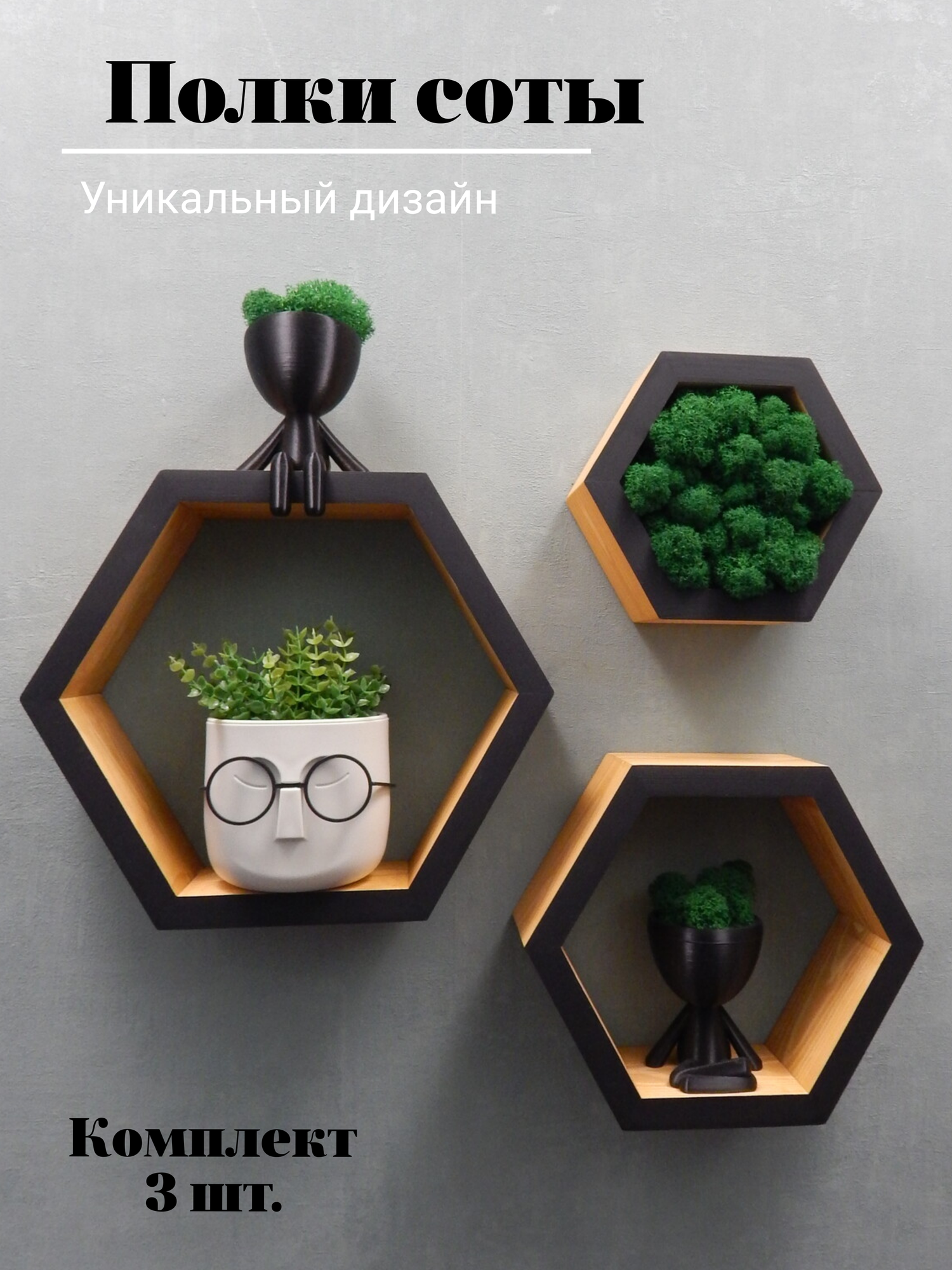 Комплект полок соты, дуб с чёрным, 3шт. информация: