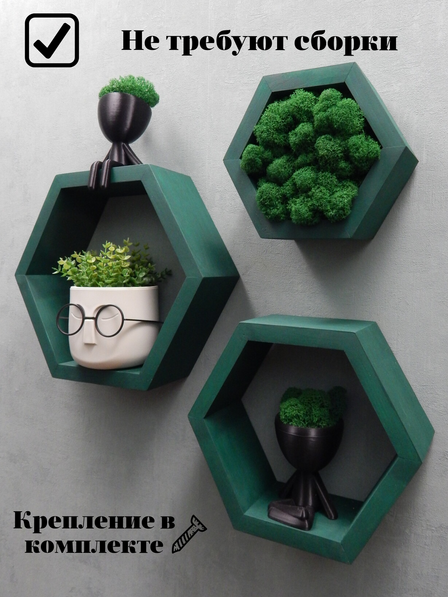 Комплект полок соты, Цвет: Зеленый мох, 3 шт. информация: