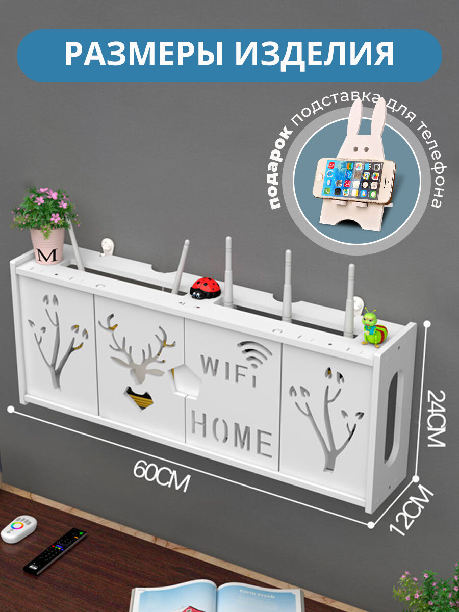 10 цен на Полка для роутера / Бокс для декора/ Короб шкаф для wifi / Подставка для роутера и сетевого оборудования 60 cм.