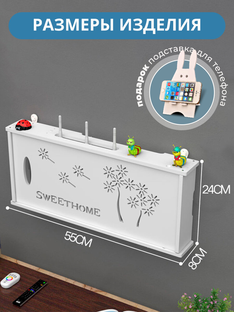Полка для роутера / Бокс для декора/ Короб шкаф для wifi / Подставка для роутера и сетевого оборудования 55 cм. информация: