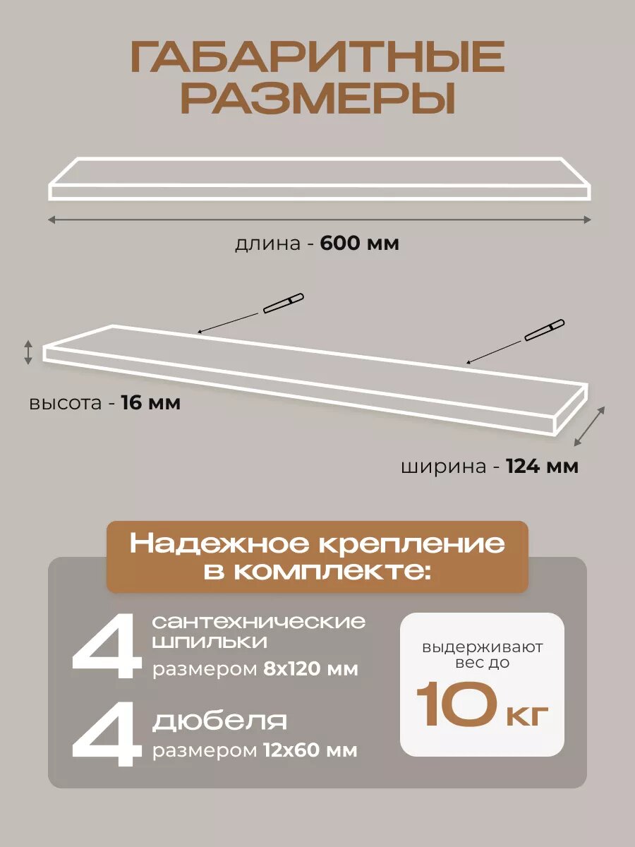 | Назначение | для гостиной/спальни / для детской / для икон / для книг / для кухни / для прихожей / для роутера / для специй / для фоторамок и сувенирной продукции / универсальное |