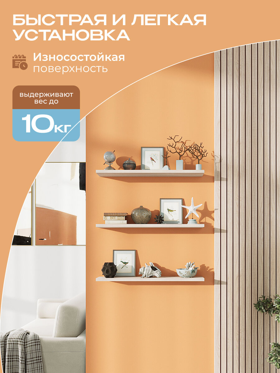 Настенная полка Conset, ЛДСП, дуб сонома, парящая конструкция, 8 кг, 3 шт 713 ₽