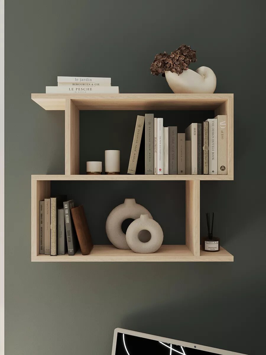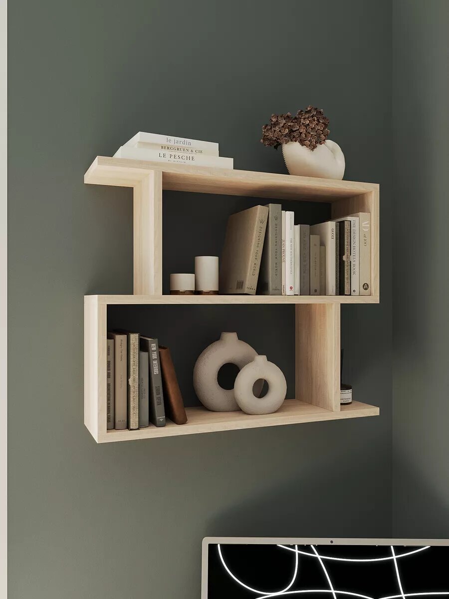 10 цен на Полка Conset "Зиг-Заг", дуб сонома, 1 шт, навесная, для книг и цветов, ЛДСП, 68х53х18