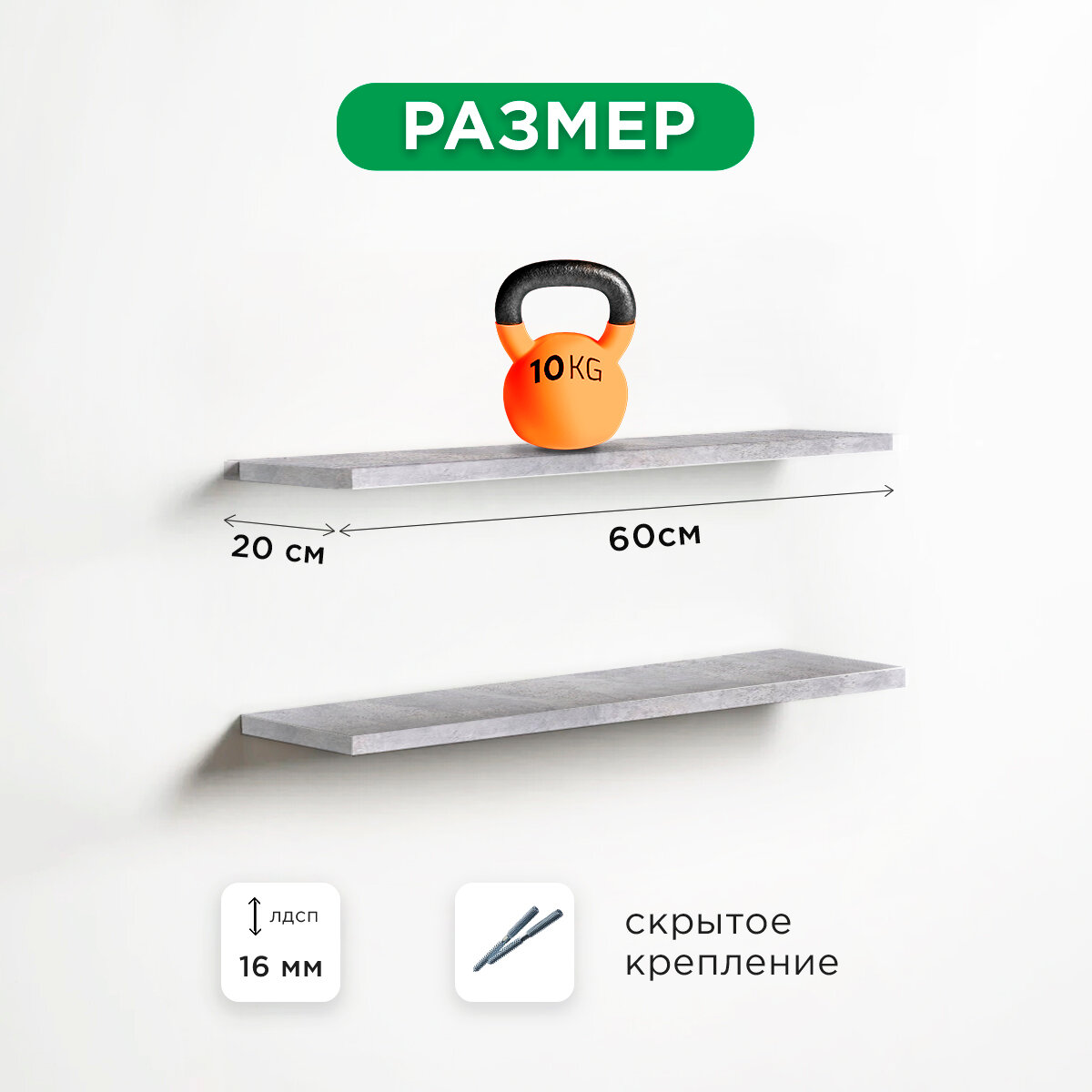 Полка настенная прямая серая цемент навесная парящая со скрытым креплением 60х20 2шт информация: