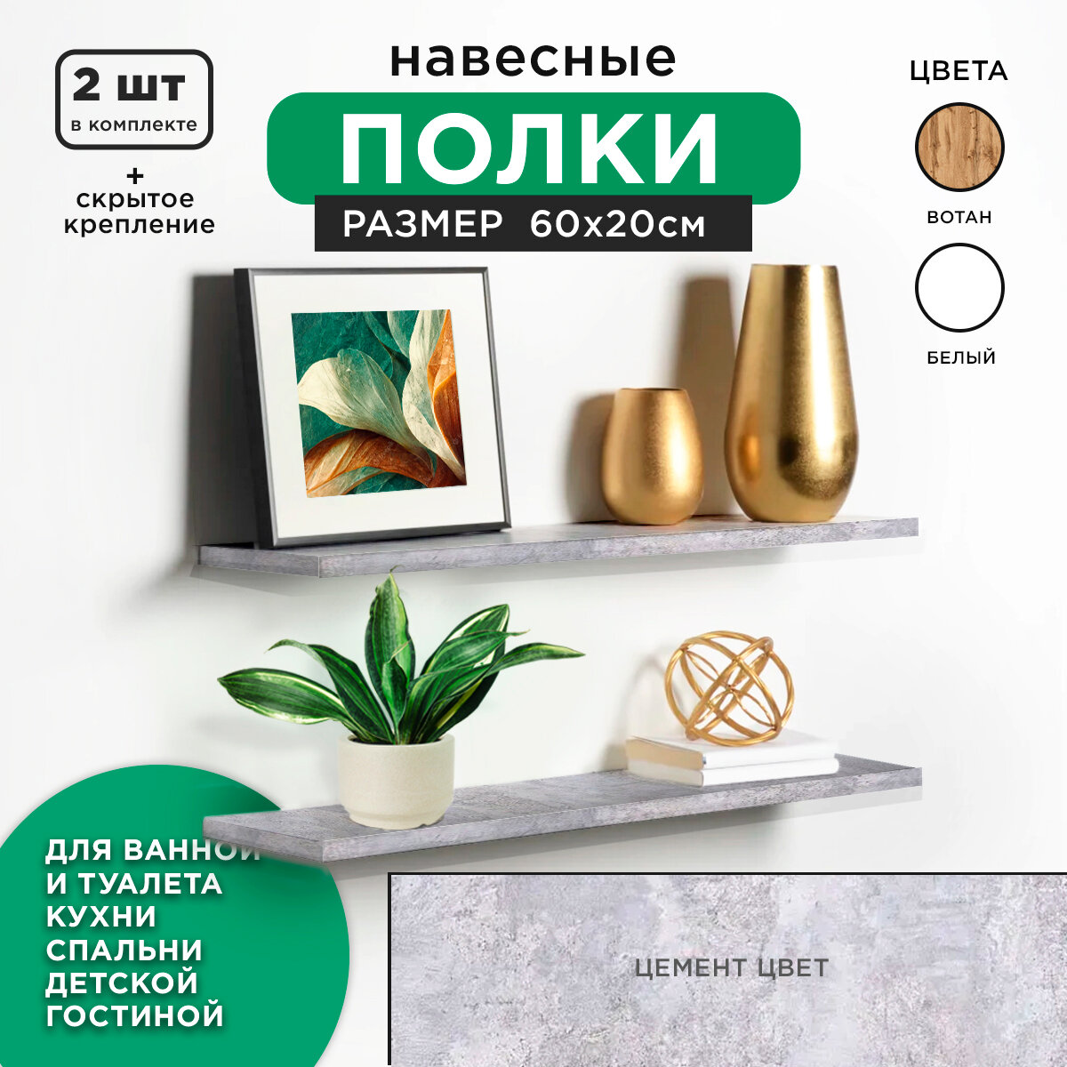 10 цен на Полка настенная прямая серая цемент навесная парящая со скрытым креплением 60х20 2шт