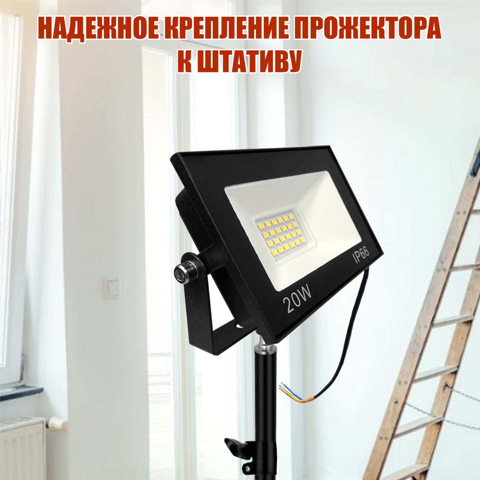 Светодиодный строительный прожектор 20 Вт на штативе строительном JBH-PRJ информация: