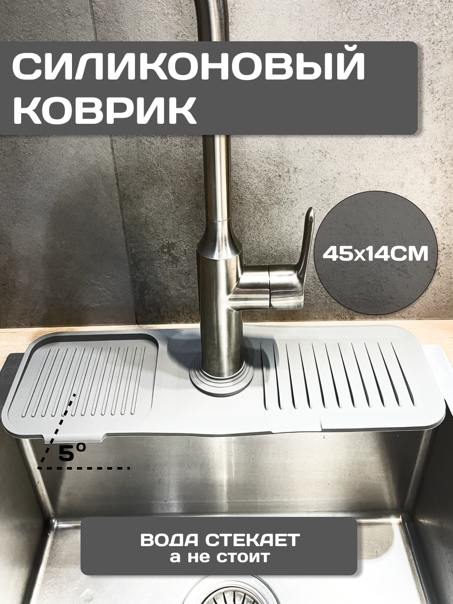 Отзывы на Коврик для раковины Packupak 1x45 см, серый, прямоугольный, с поддоном, защита от воды