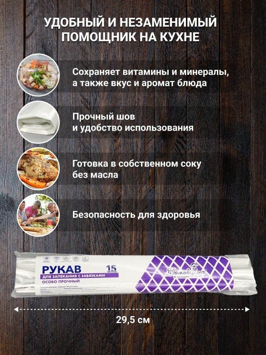 | Комплектация | Рукав для запекания 29,5см х 15м с завязками, 1 упаковка |