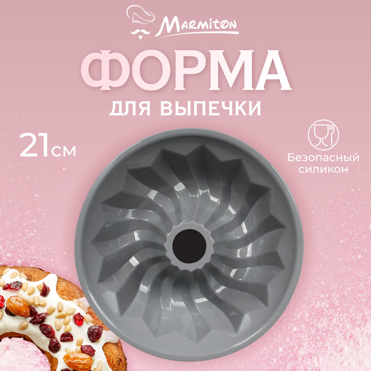 Форма силиконовая для выпечки/запекания/торта/шоколада/кексов/бисквита, кекс с отверстием, 21*5,5 см "Marmiton" BASIC информация: