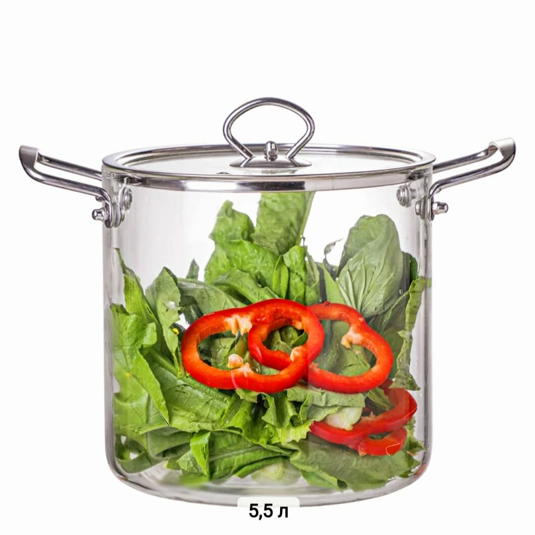 Кастрюля из боросиликатного термостойкого стекла 5.5 литра информация: