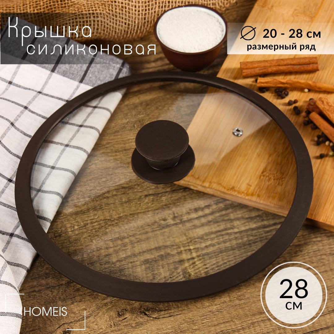 10 цен на Крышка стеклянная с силиконовым ободом 28 см / крышка для сковороды / крышка для кастрюли
