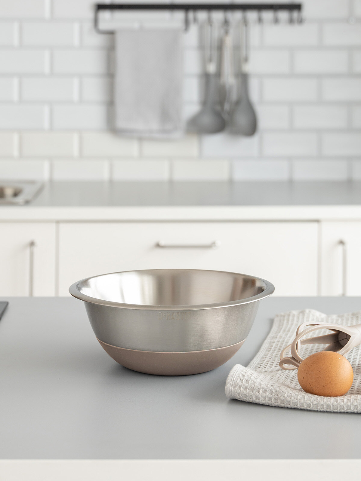 10 цен на Миска для смешивания продуктов DeNASTIA D22см, 1,9л, нерж. сталь+силикон, бежевая