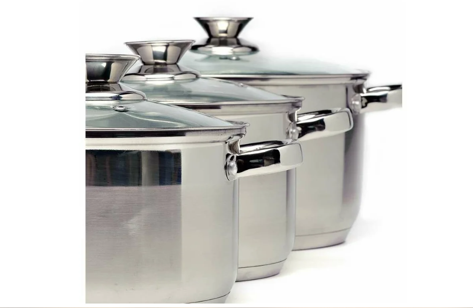 Отзывы на BEKKER BK-1250 Jumbo, Набор посуды из 7 предметов из нержавеющей стали (кастрюли 2,9 л; 3,9 л; 6,5 л; защитная подставка; крышки стеклянные - 3 штуки)