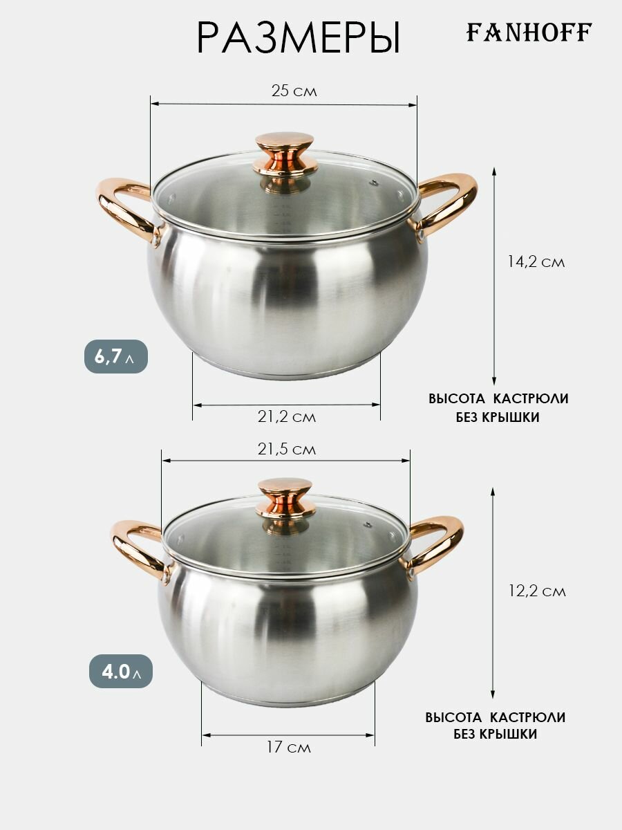 Отзывы на Набор кастрюль FANHOFF из нержавеющей стали с крышками, 6,7 л, 4 л, 3 л