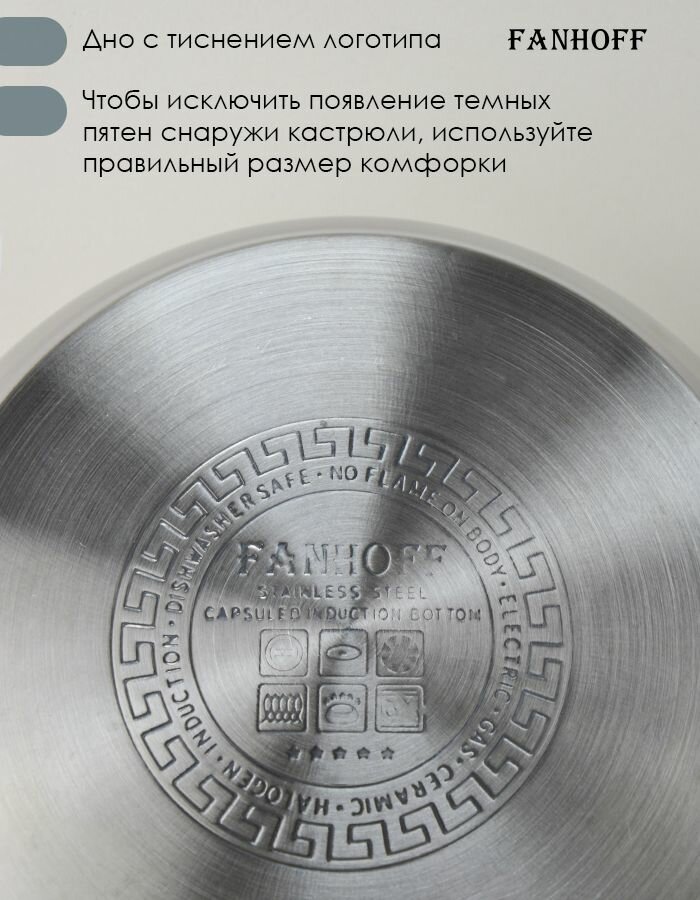 Отзывы на Набор кастрюль FANHOFF из нержавеющей стали с крышками, 6,3 л, 2,8 л, 2 л