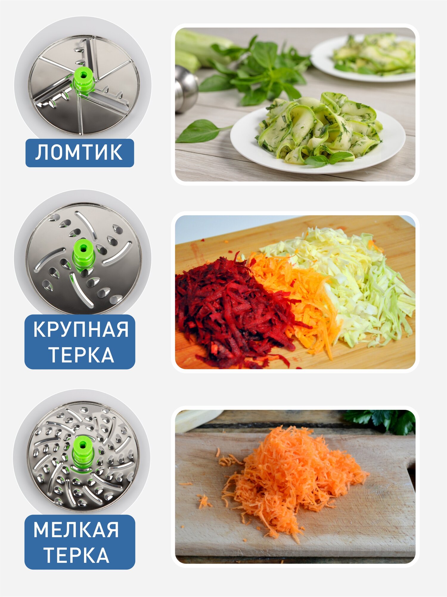 Отзывы на Терка роторная для овощей и фруктов, пластик, зеленая, 3 сменные насадки