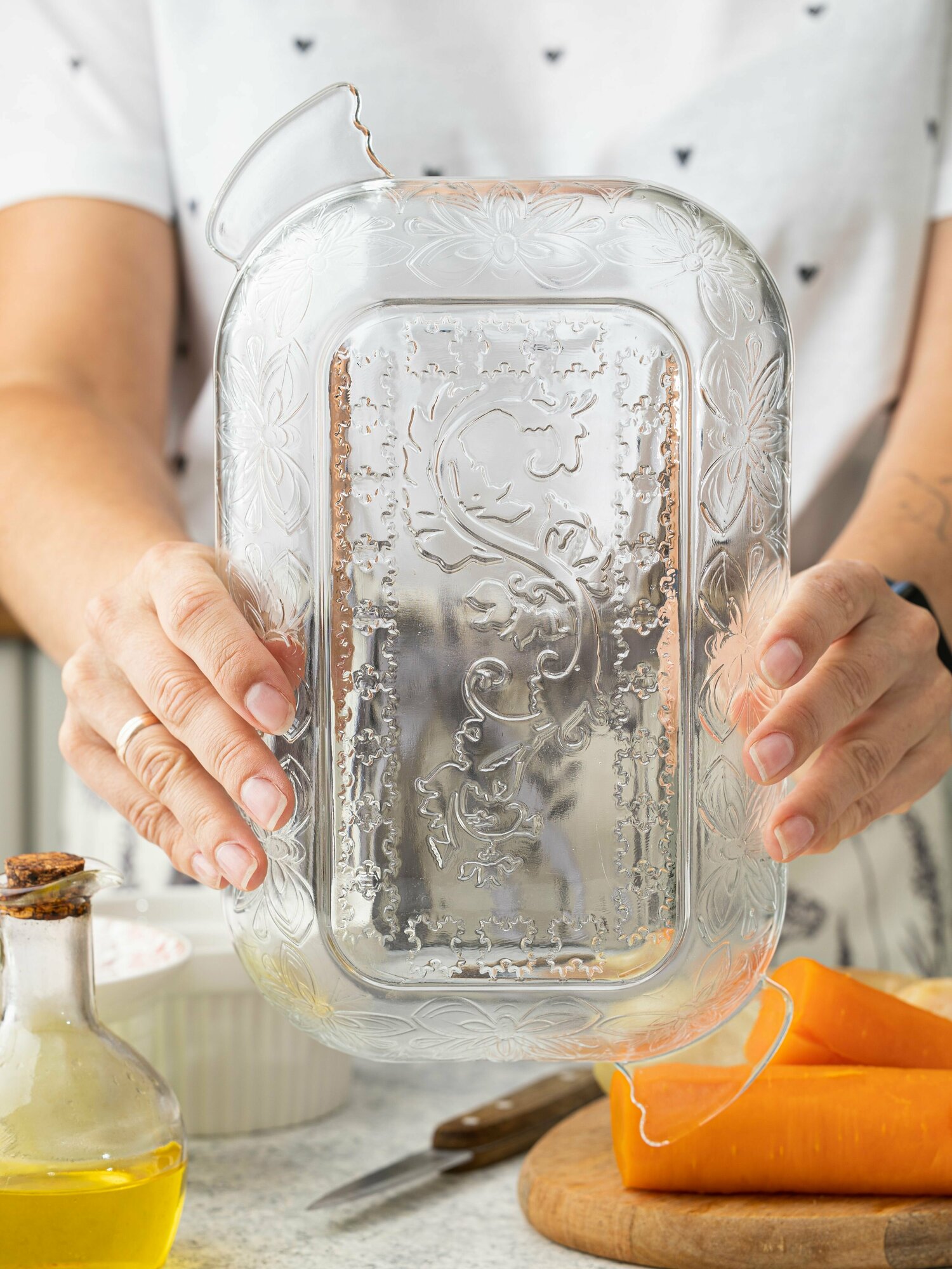 Отзывы на Салатник стеклянный, шубница, блюдо сервировочное для холодца, мимозы "Райский сад". Объём 1200 мл. Размер без ручек: 240 мм*155мм*50мм