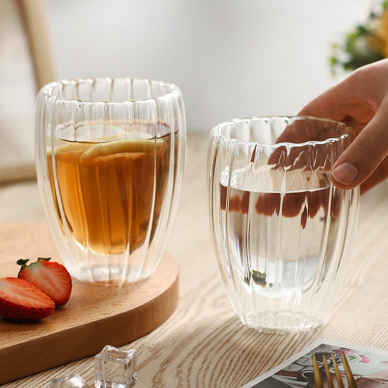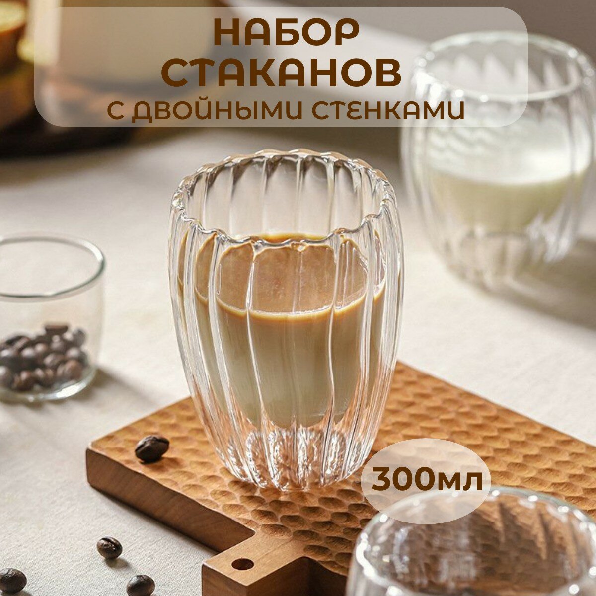10 цен на Рифленые стеклянные стаканы с двойными стенками, 4 штуки, объем - 300 мл