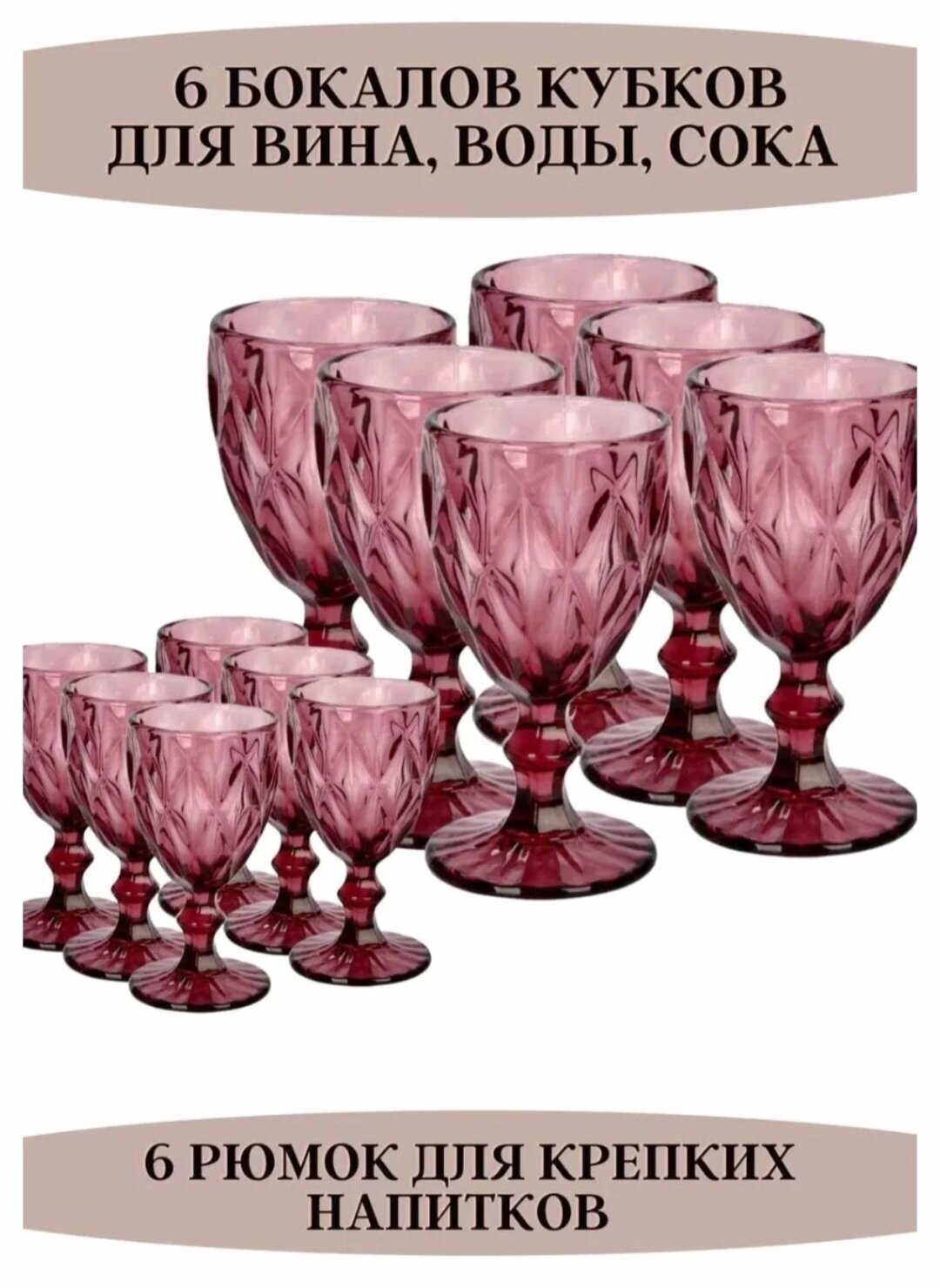 Подарочный набор бокалов и рюмок "Glass Ware" 12 шт бордовый информация: