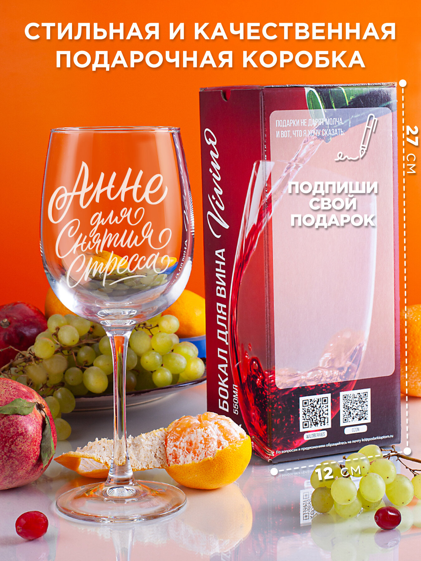 Бокал для вина с гравировкой Анне для снятия стресса Подарок подруге маме девушке женщине на день рождения Фужер для вина бокал с надписью. информация: