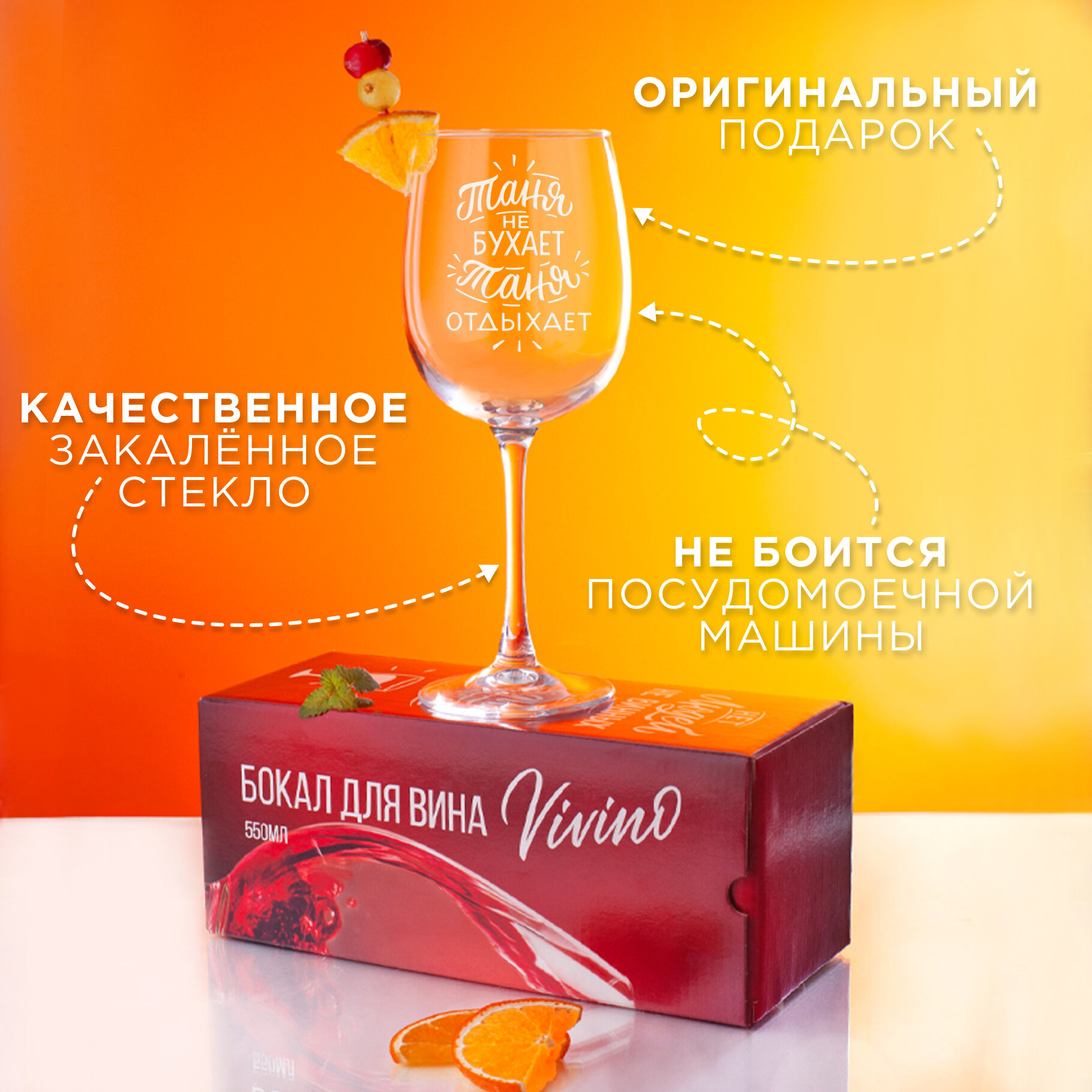 Бокал для вина с гравировкой Таня не бухает Таня отдыхает Подарок подруге маме девушке женщине сестре коллеге на день рождения 14 февраля 8 марта информация: