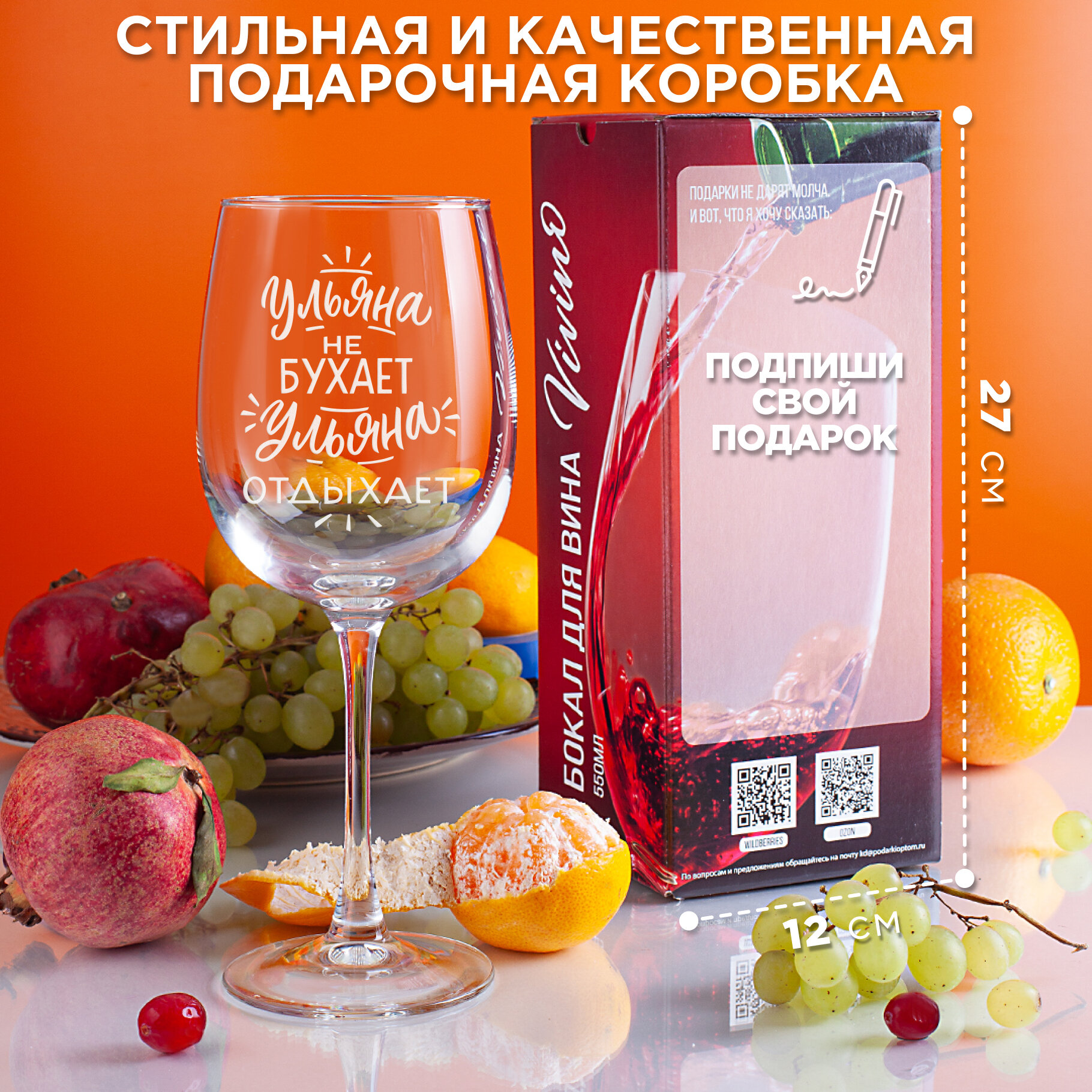 Бокал для вина с гравировкой Ульяна не бухает Ульяна отдыхает Подарок подруге девушке женщине сестре коллеге день рождения 14февраля 8марта Новый год информация:
