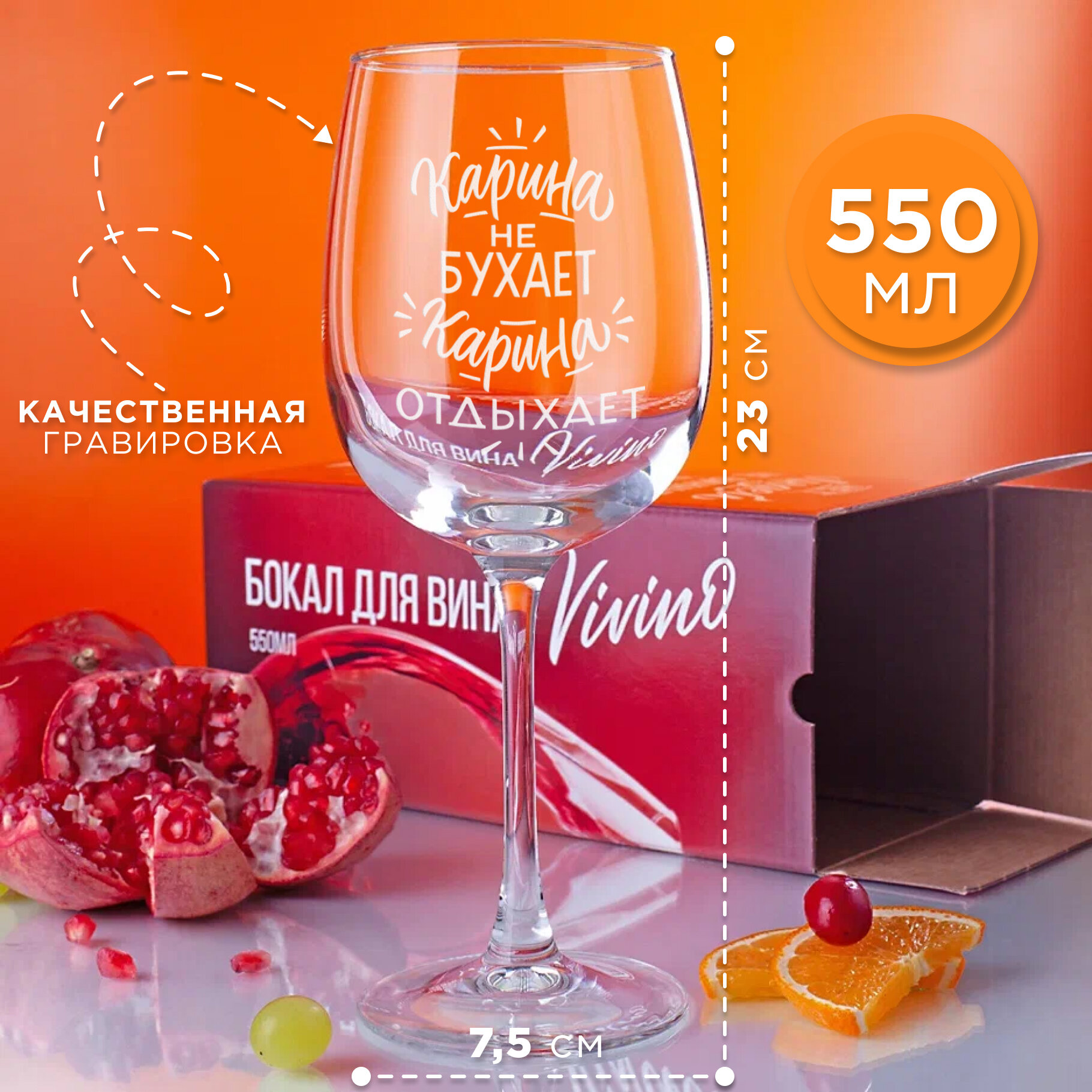 Бокал для вина с гравировкой с надписью Карина не бухает Карина отдыхает Подарок женщине сестре подруге коллеге девушке день рождения Новый год информация: