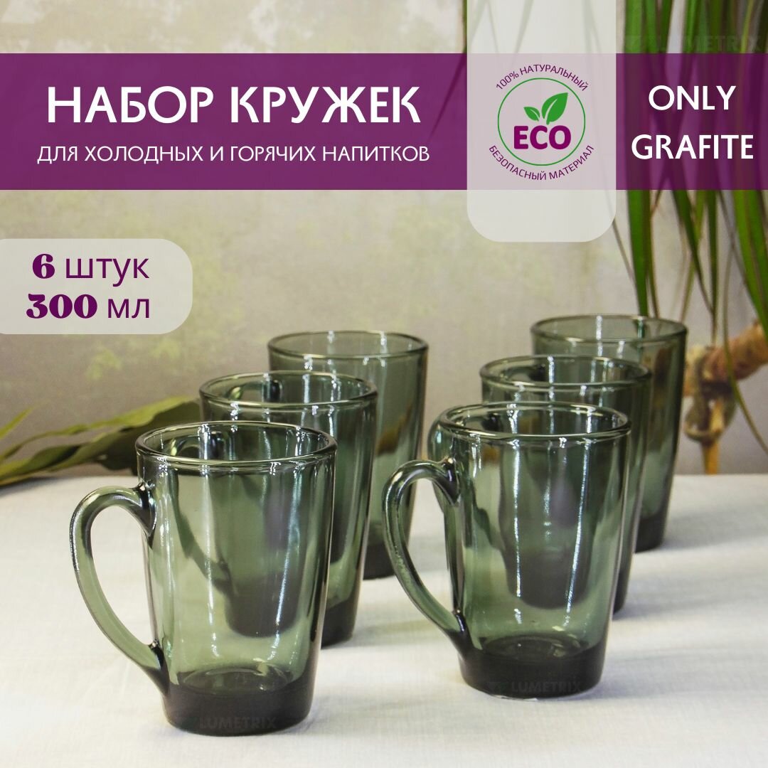 Набор кружек стеклянных, 300 мл, 6 шт, для чая, кофе, Verso ONLY GRAFITE информация: