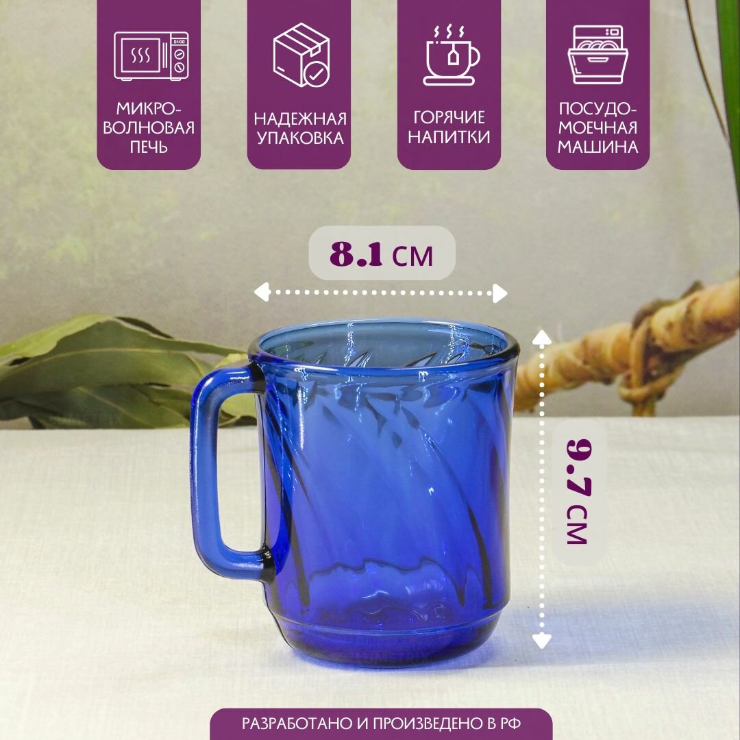 Набор кружек стеклянных, 310 мл, 6 шт, для чая, кофе, Verso SEA BRIM SAPHIR информация: