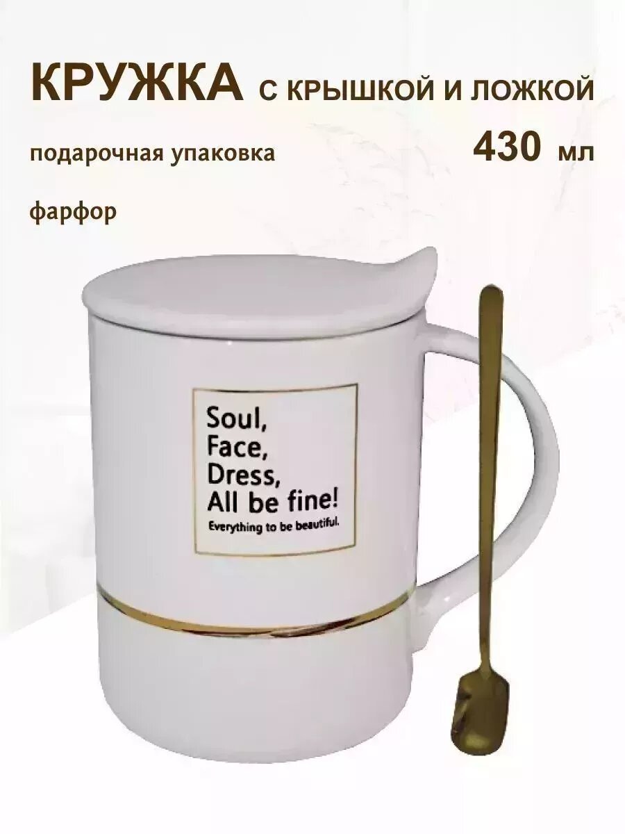 Кружка 420мл с крышкой и ложкой Фарфор Lenardi (198995) 737 ₽