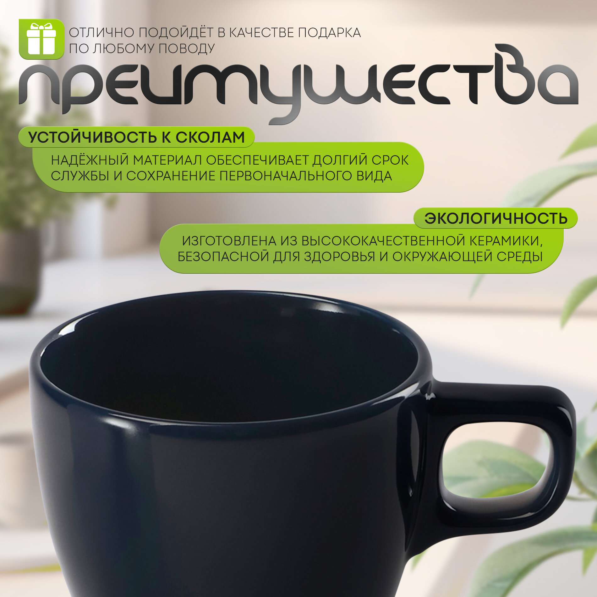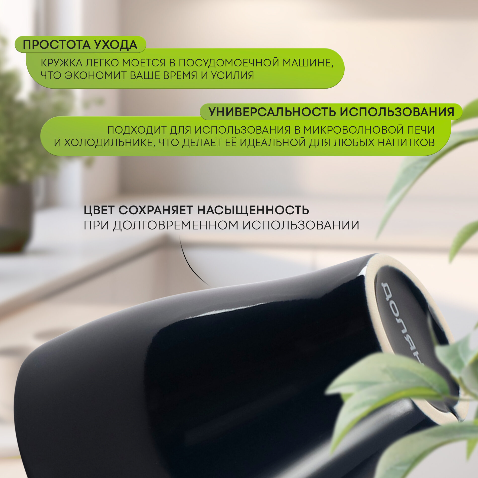 | Особенности | использование в СВЧ / мытье в посудомоечной машине / подходит для горячих напитков / с декором / с ручкой |
