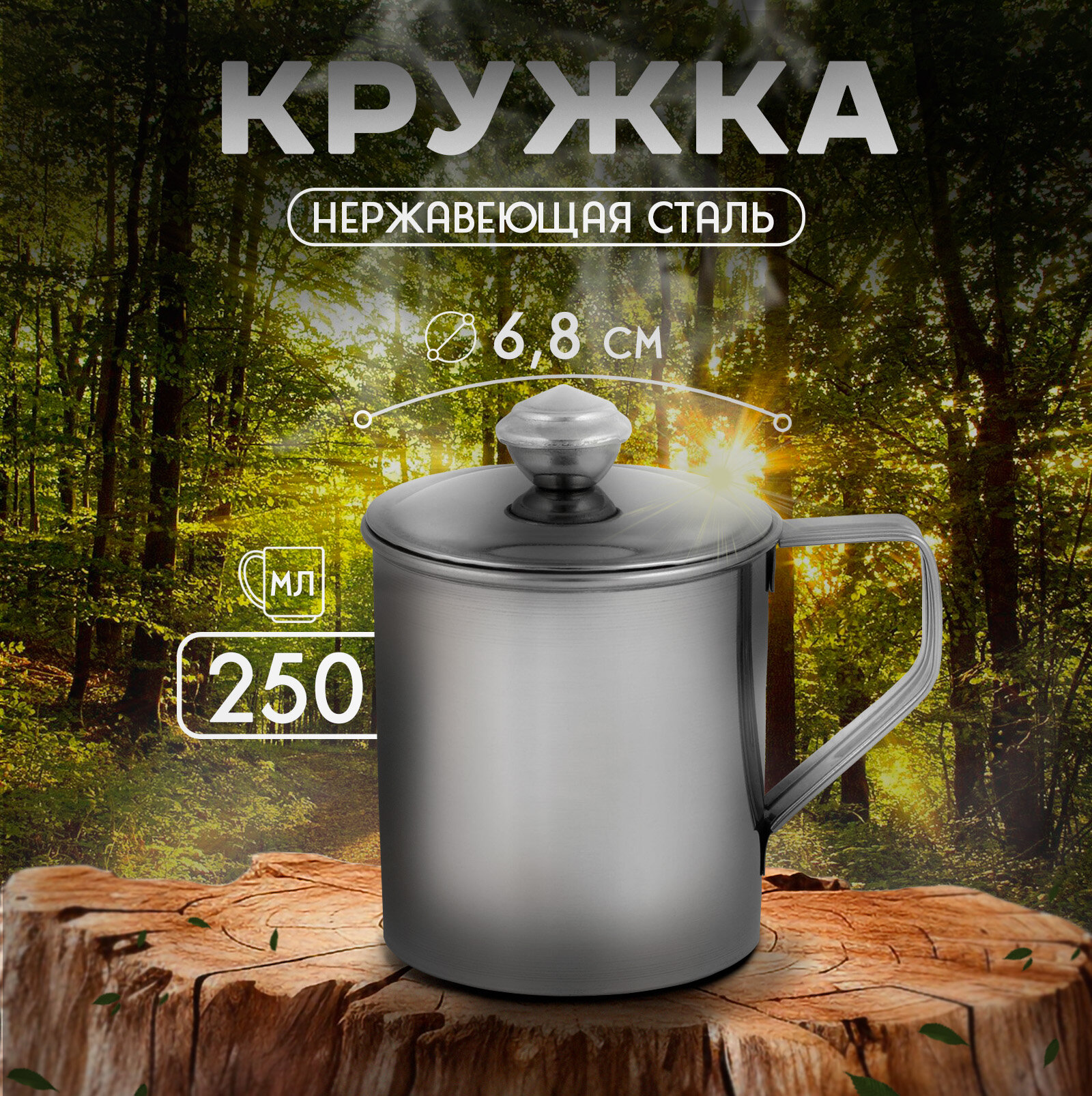 Кружка металлическая Доляна с крышкой, 200 мл, 9,5х6,8х8,5см (848675) 295 ₽