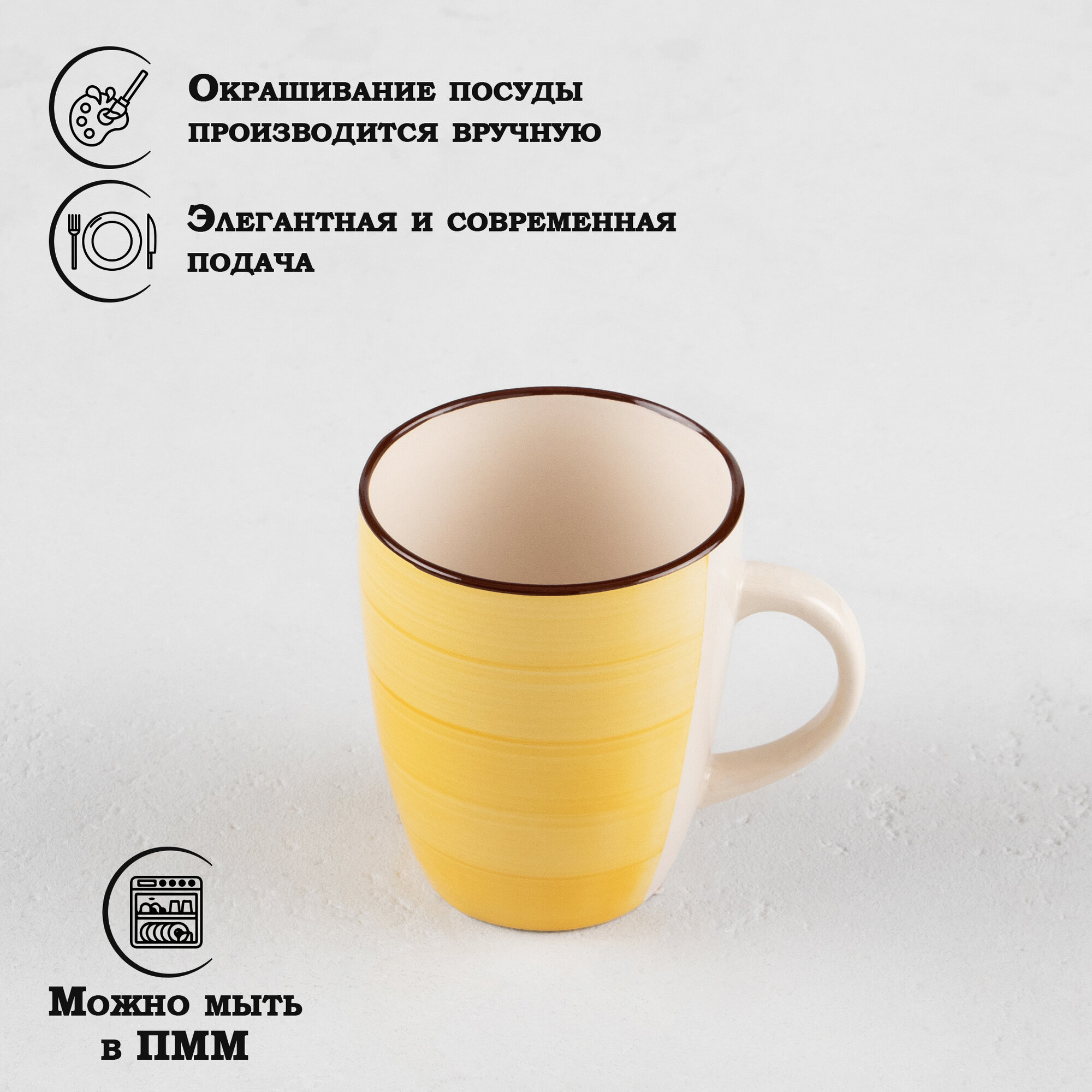 Кружка керамическая Доляна «Морской мир», 360 мл, цвет жёлтый информация: