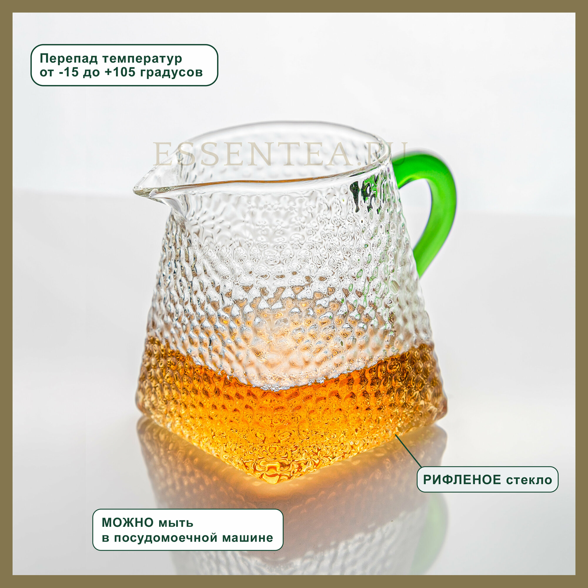 Essentea / Стеклянная чашка "чахай" с зеленой ручкой 300 мл информация: