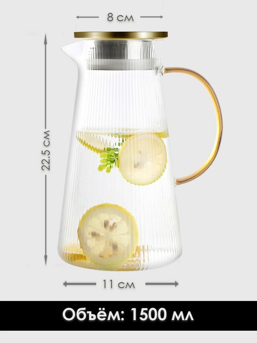 Кувшин стеклянный с крышкой для воды и напитков из жаропрочного стекла Полоска, 1300 мл (графин, чайник, заварник) ADECORI 1 450 ₽