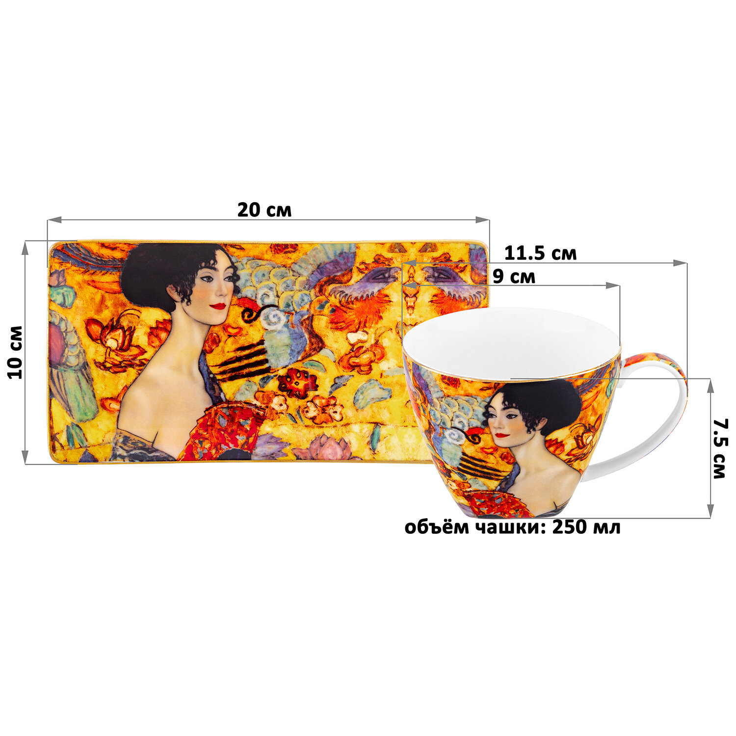 Чашка / кружка для чая, кофе 250 мл с блюдцем для десерта 20х10х2 см Elan Gallery Дама с веером информация:
