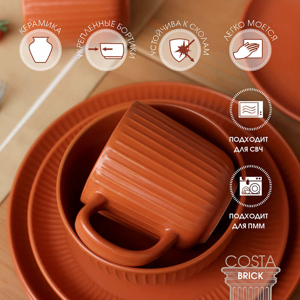 Набор посуды на 4 персоны 16 предметов "Costa brick" керамика. Столовый сервиз обеденный c кружками и салатниками 9 865 ₽