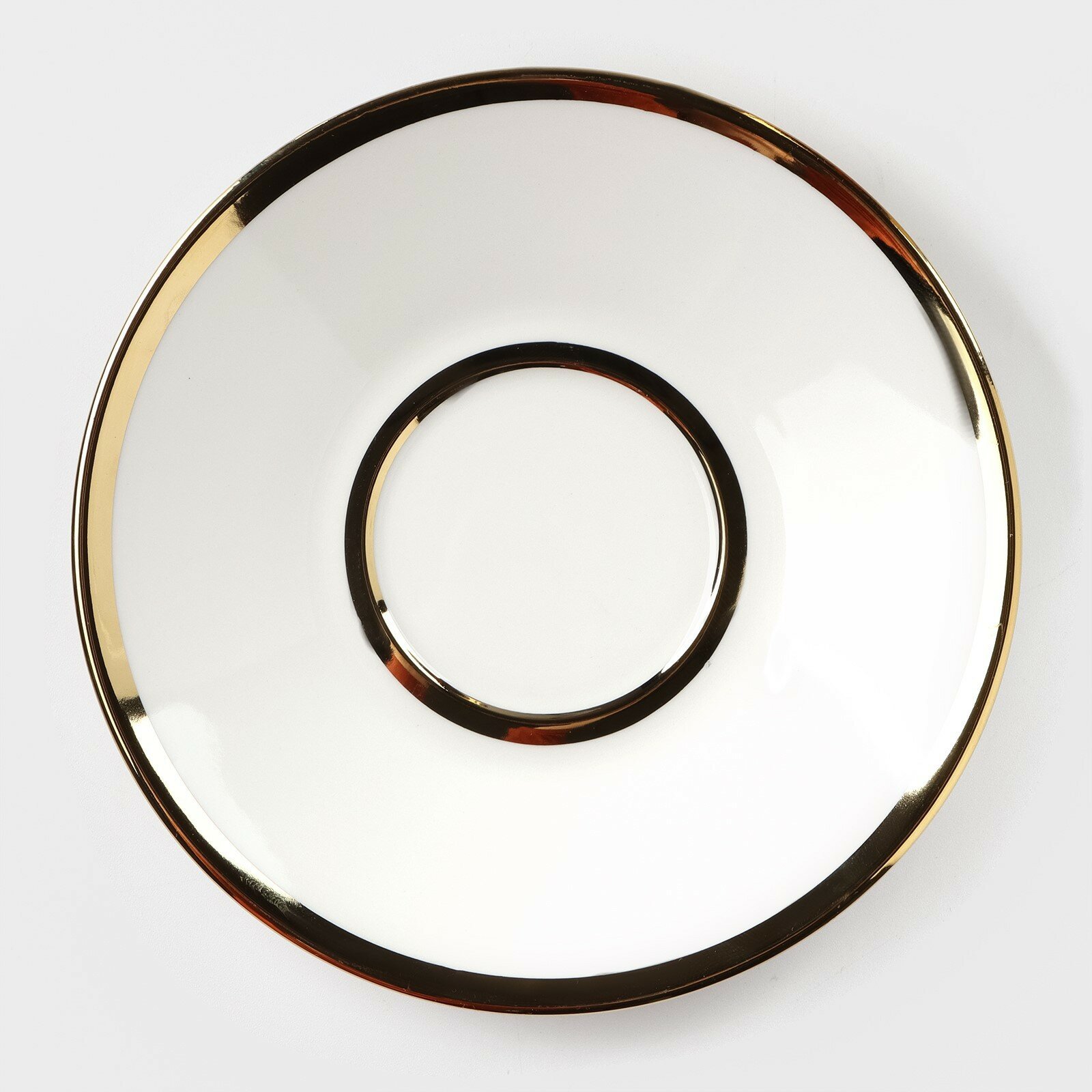 10 цен на Кофейная пара керамическая «Золото», 3 предмета: чашка 200 мл, блюдце d=14 см, ложка h=12,5 см, цвет золотой