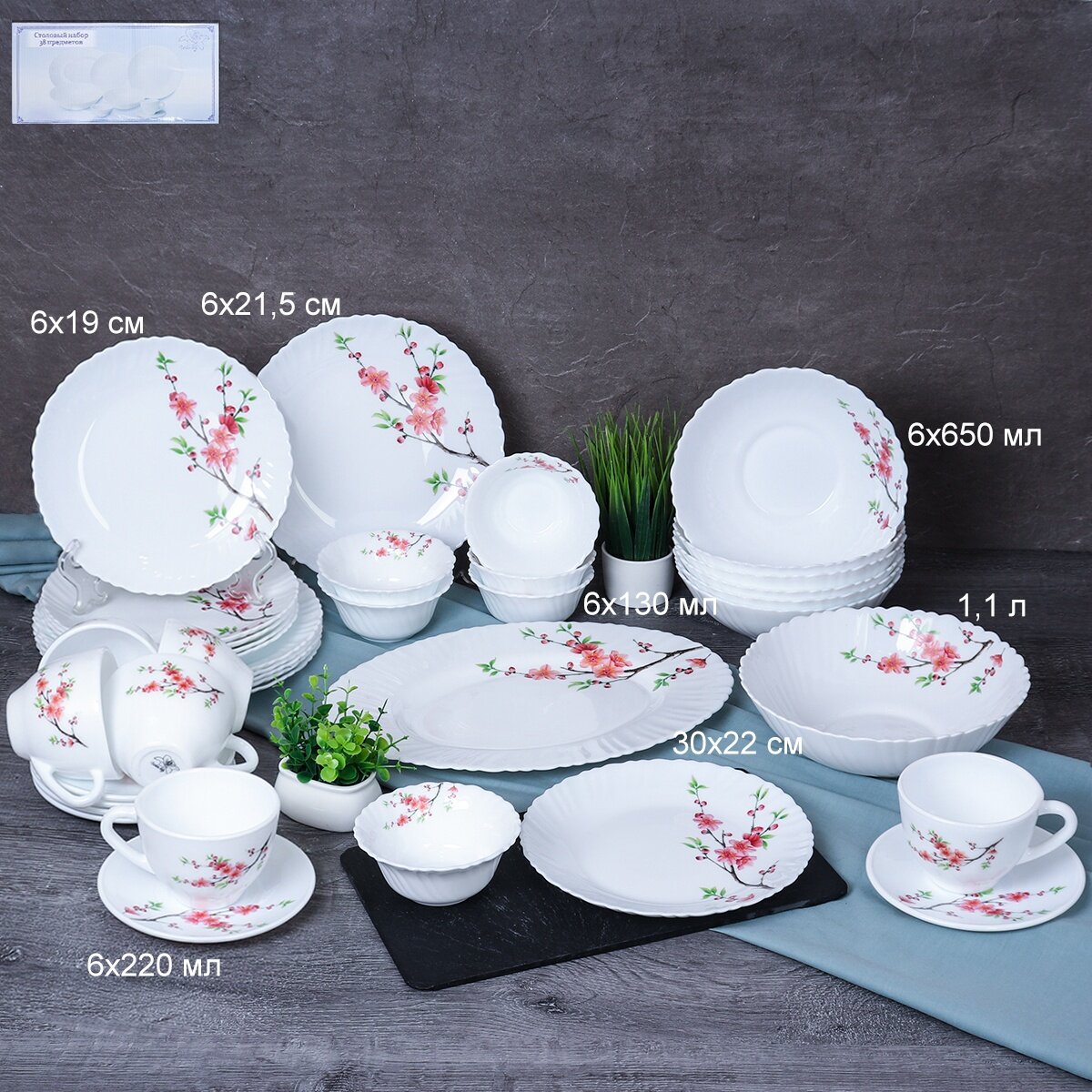 Столовый сервиз "Цветущая сакура" на 6 персон, 38 предметов информация: