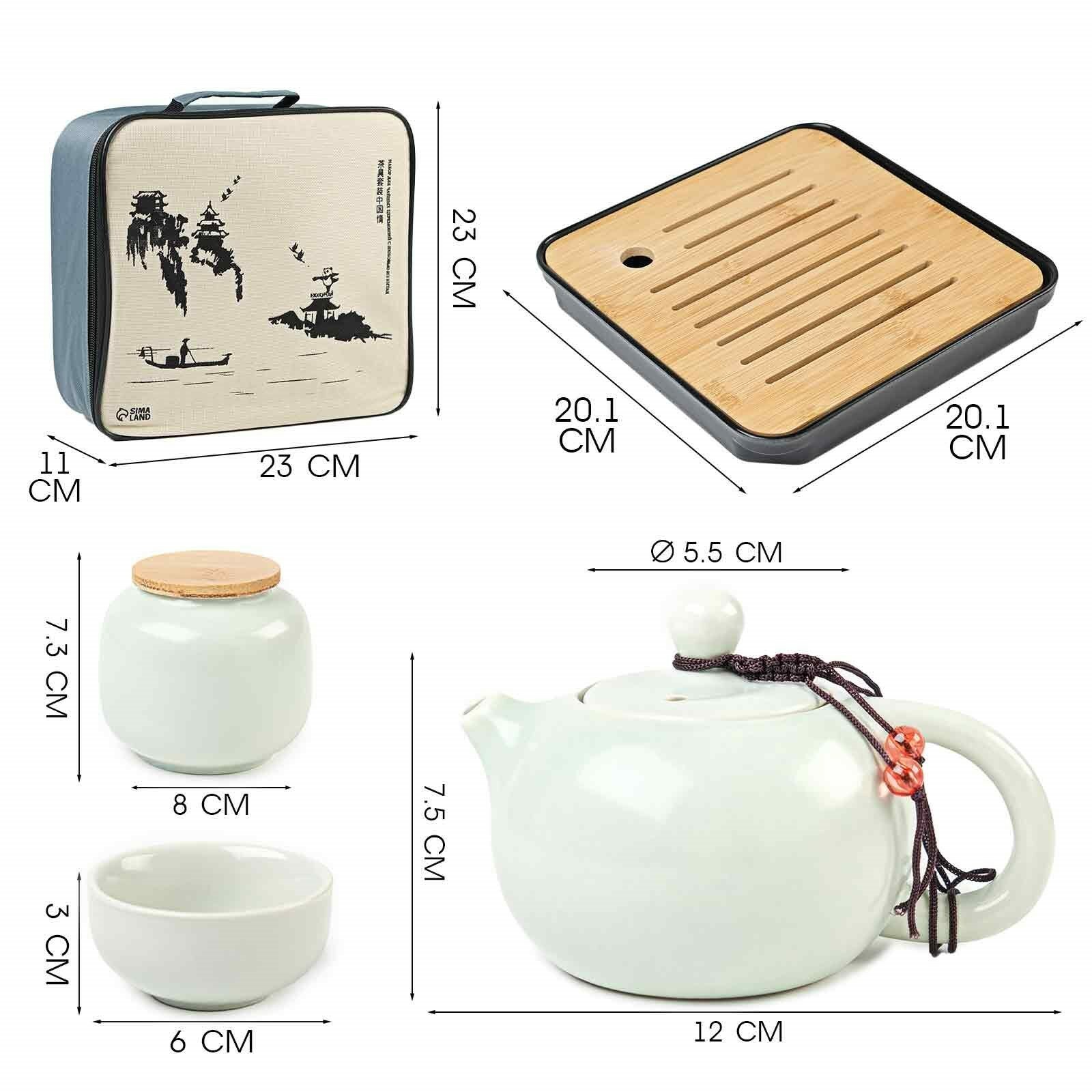 | Дополнительная информация | высота чайника (заварника): 6 см, диаметр чайника (заварника): 9 см, диаметр горловины чайника (заварника): 8 см; высота чашки: 3 см, диаметр чашки: 6 см; высота чайницы: 5,5 см, диаметр чайницы: 5 см; высота сумки: 11 см, ширина сумки: 20 см, толщина сумки: 7,5 см. |