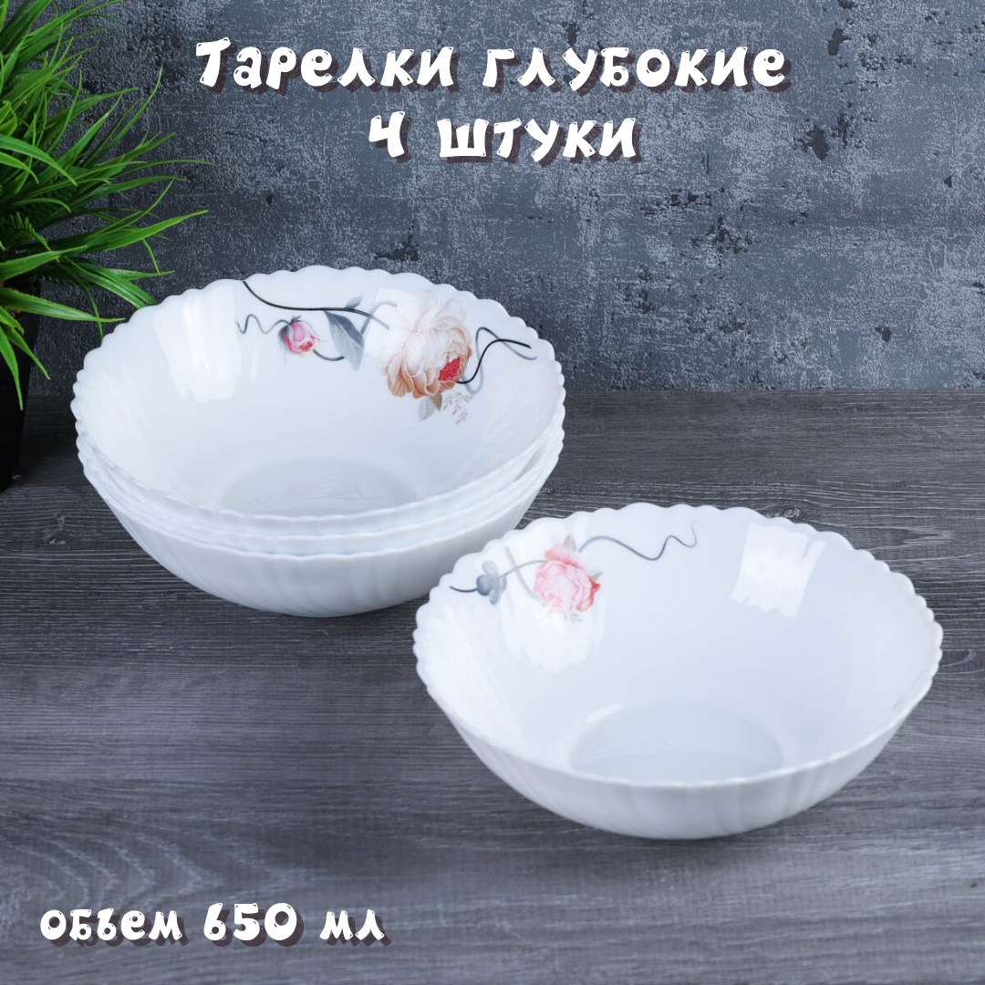 Глубокие тарелки 4 штук 650 мл "Душистая роза" для супа информация: