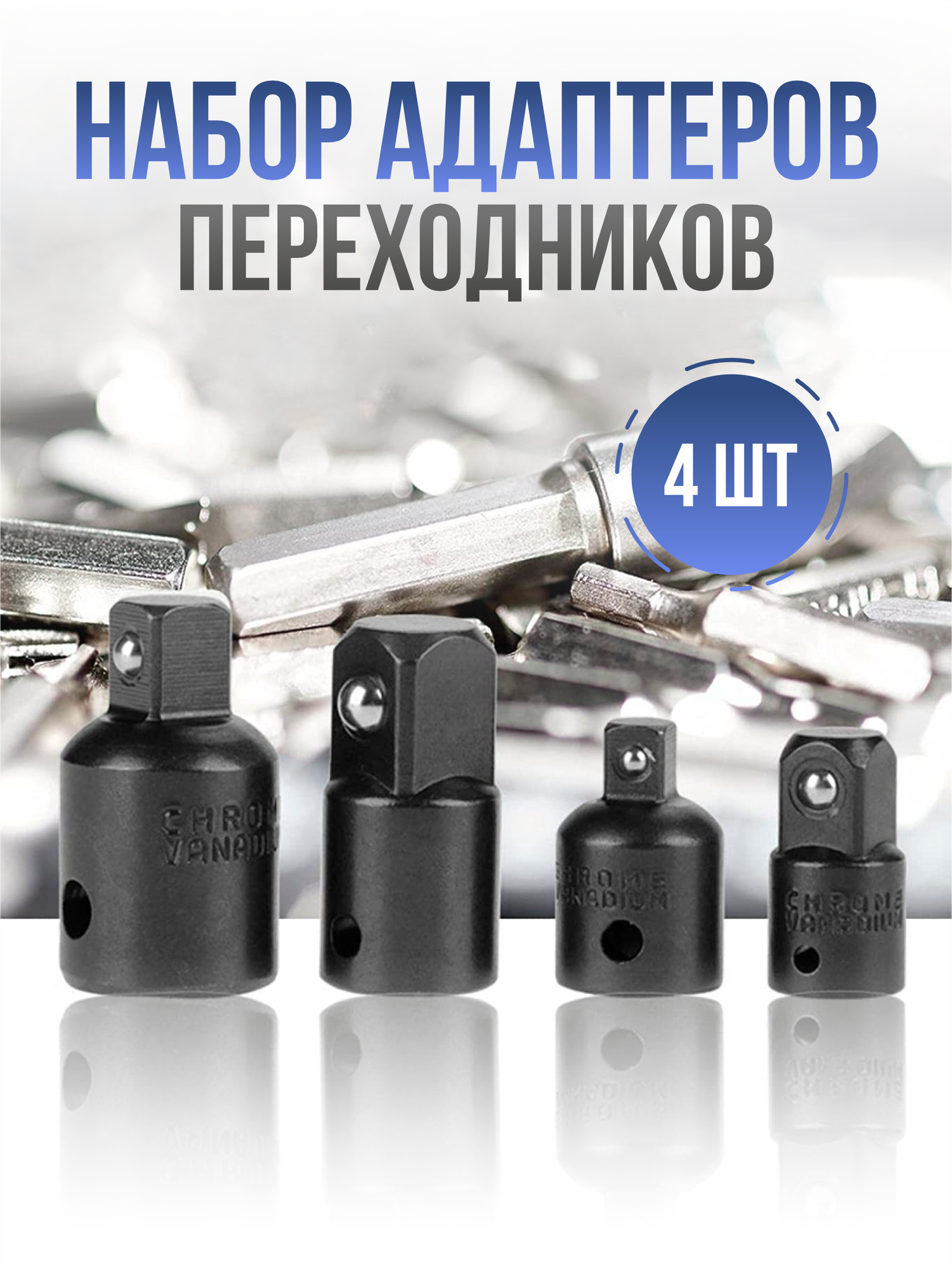 Набор универсальных переходников для торцевых головок, комплект из 4 адаптеров информация: