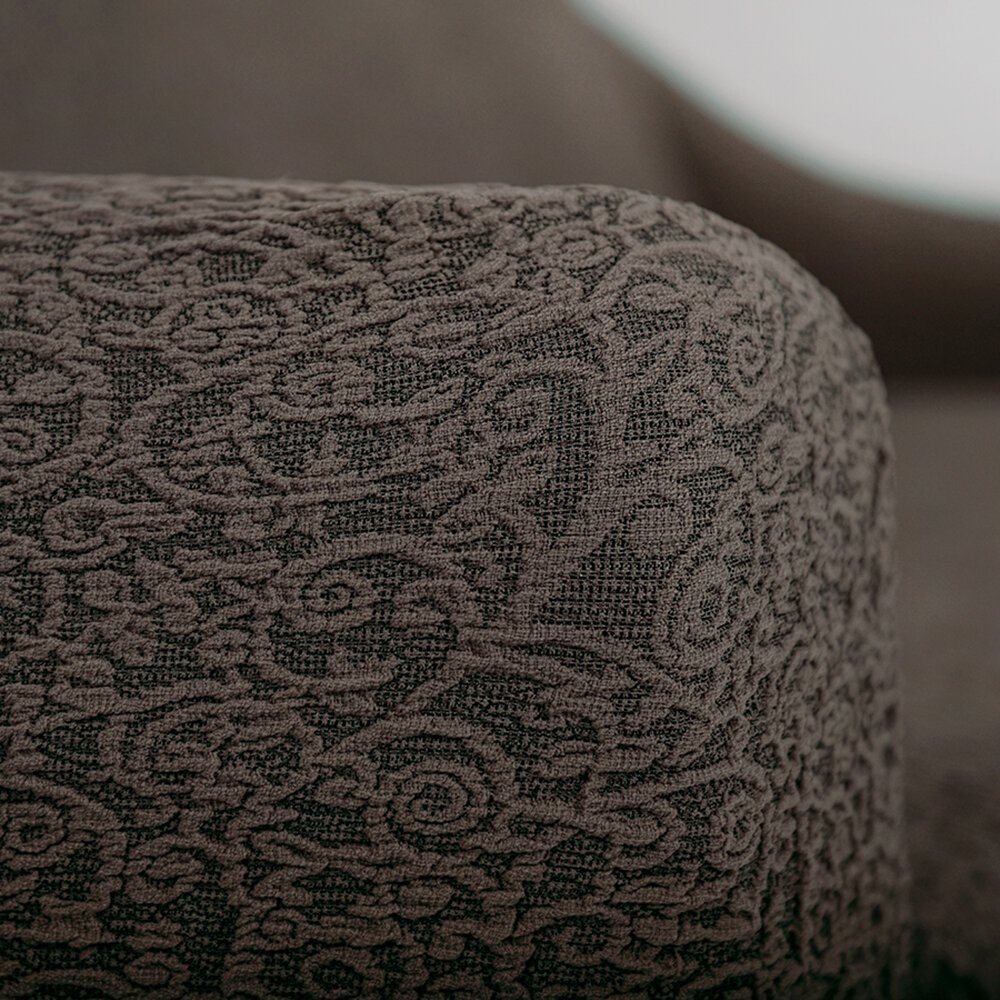 Чехол на трехместный диван без оборки с подлокотниками Жаккард, цвет Кофе