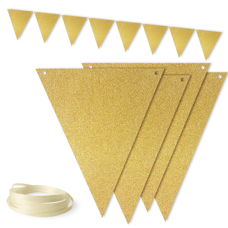 Гирлянда растяжка треугольные флажки золотая, 300 см информация: