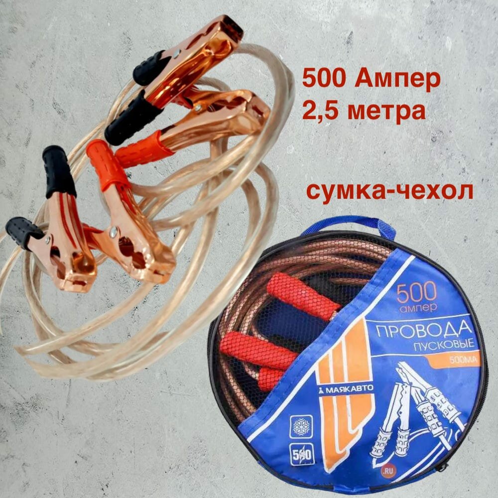 Провода прикуривателя (стартовые провода) 500А 2,5 метра (силиконовые) маякавто