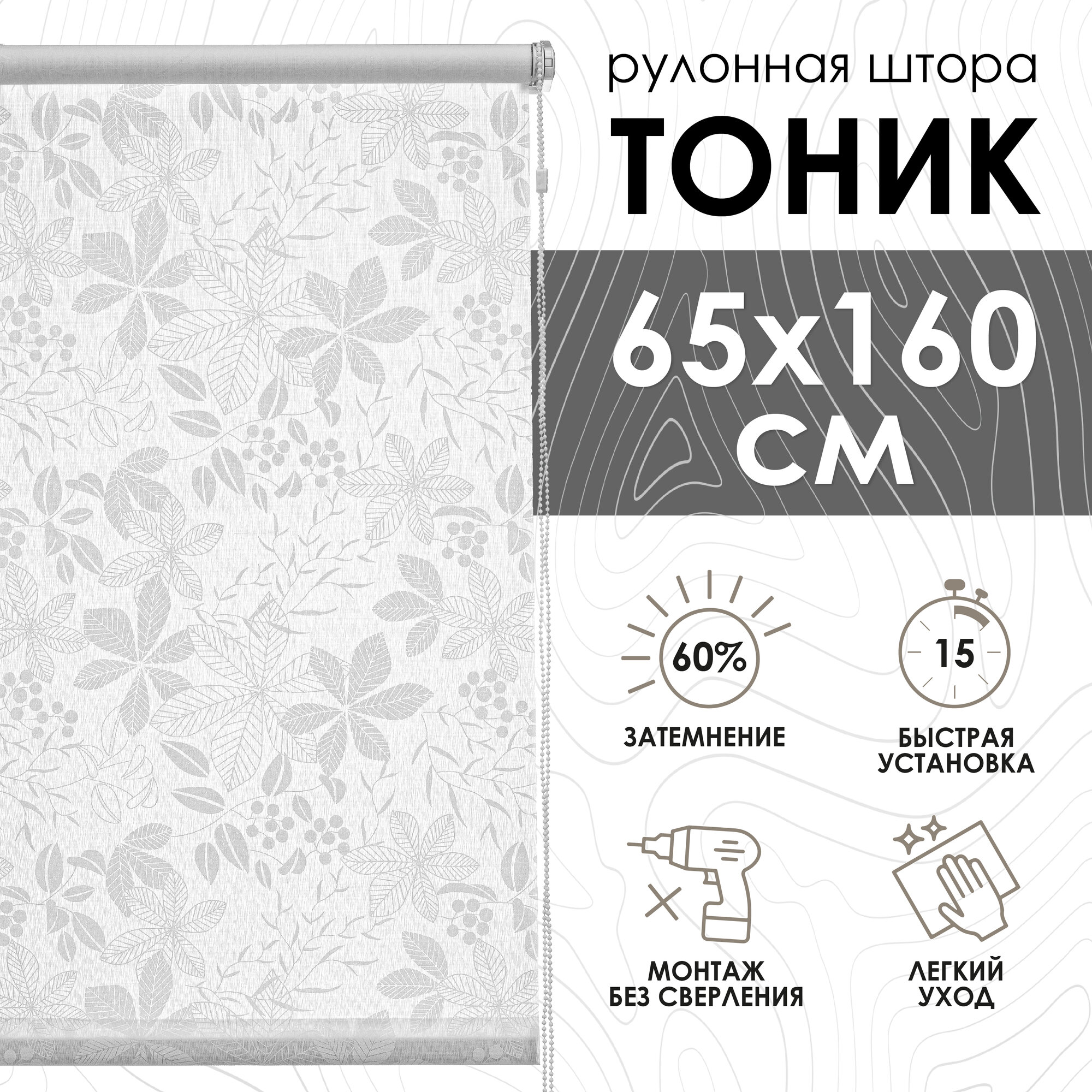 Рулонные шторы Тоник, "Эскар", белый, 65х160 см информация: