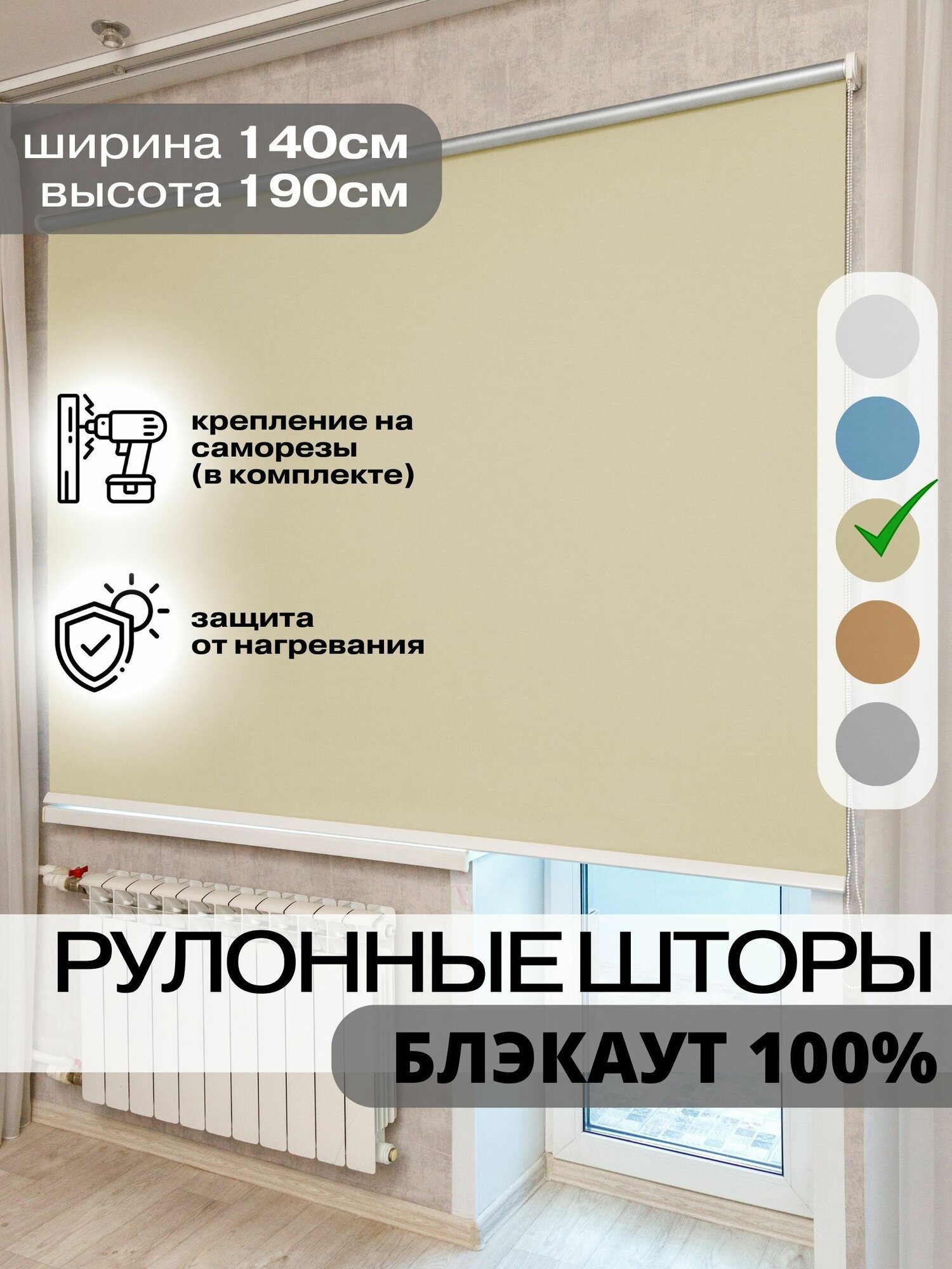 Отзывы на Рулонные шторы блэкаут 140х190 см Roll Life бежевые ванильные светоотражающие