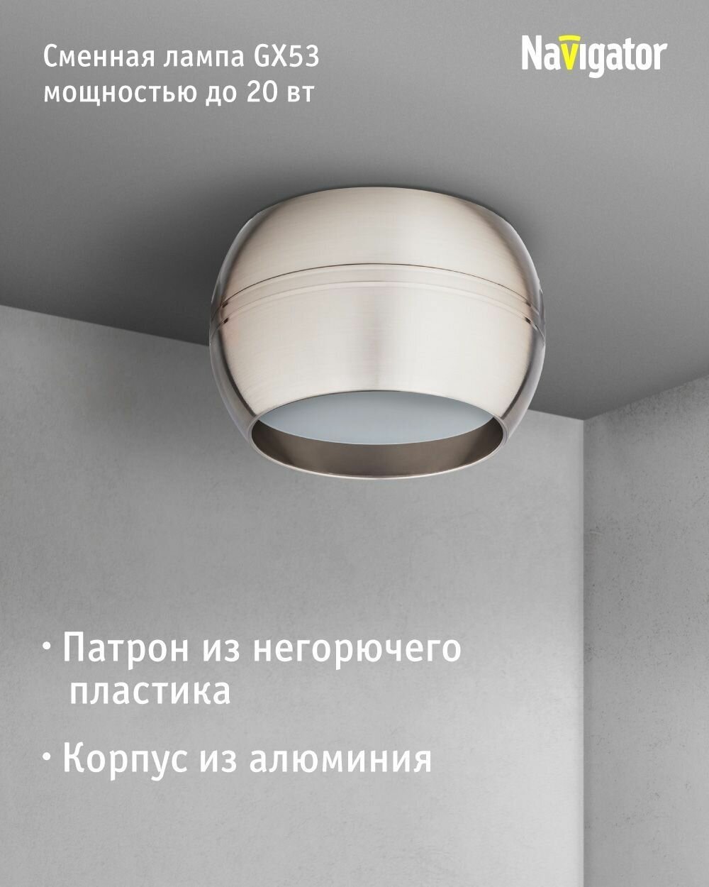 Отзывы на Светильник потолочный встраиваемый Navigator 93 493 под лампу с цоколем GX53, сатин-хром