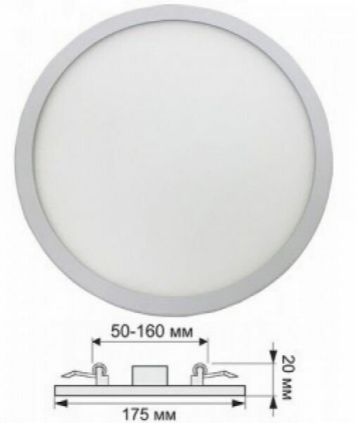Ecola LED downlight встраив. Круглый даунлайт /50-160mm/ 15W 220V 4200K 175x20 DARV15ELC информация: